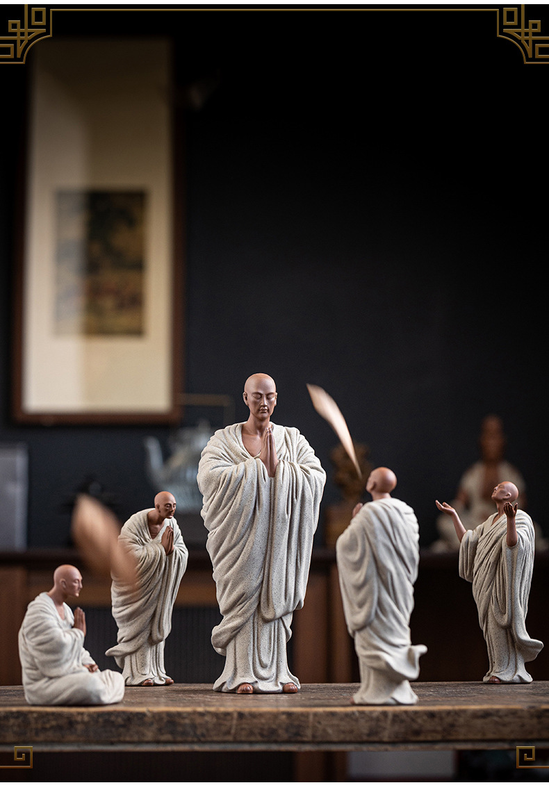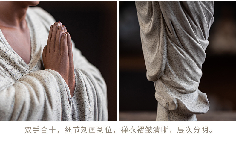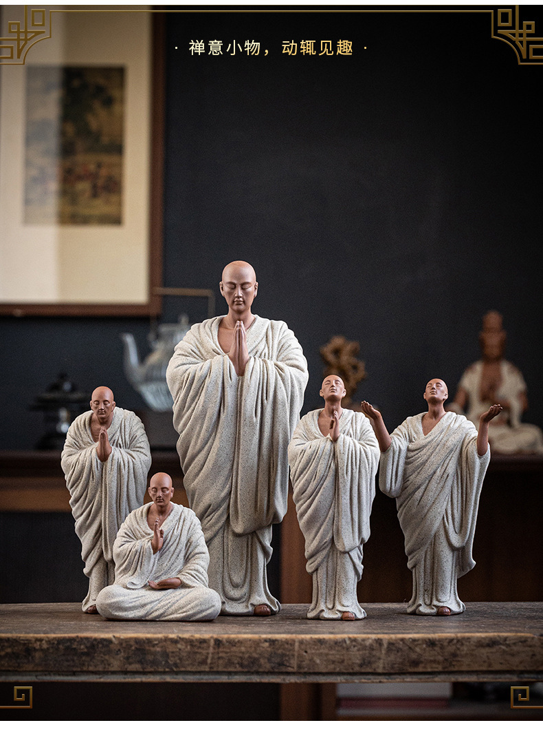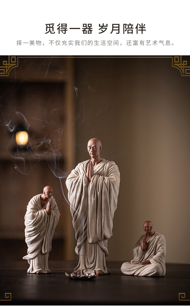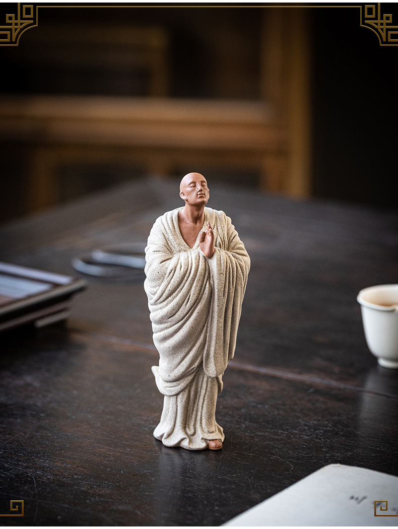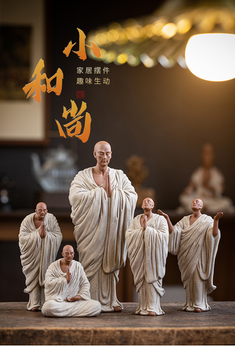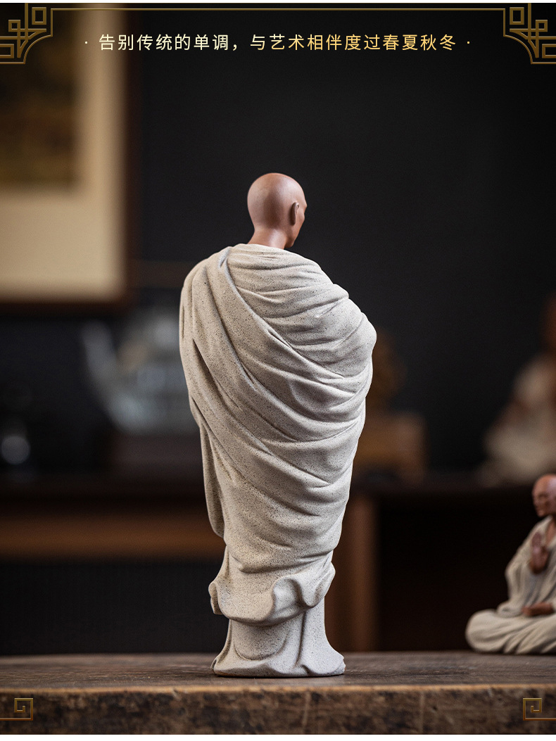 Zen Purple Sand Small Monk Ornaments Chinese Home Wish Small Monk Tea Room Desktop Antique Frame Ceramic Crafts