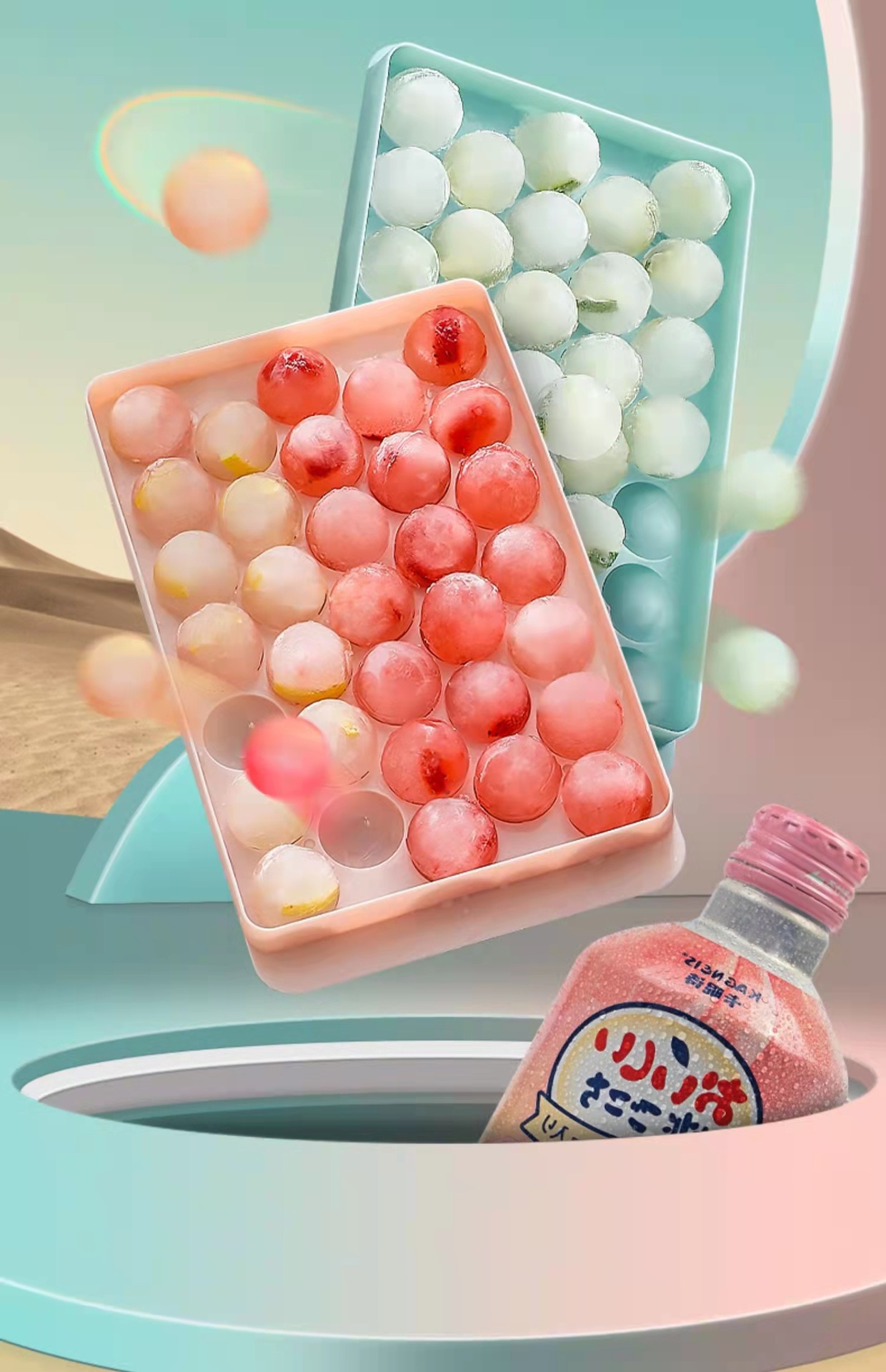 For Foreign Trade Only - Hot-Selling Wholesale 33-Grid Ice Cube Tray, Round Ice Ball Mold, Household Ice Box with Lid, Ice Pop Maker