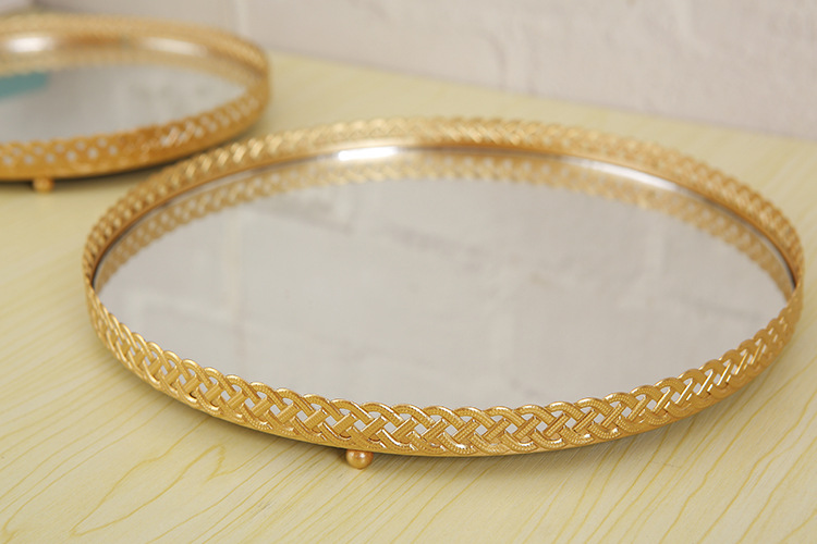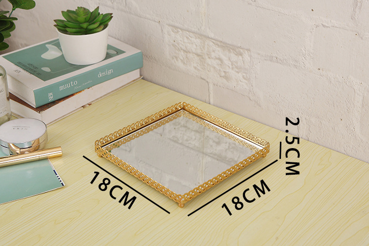 Ins Metal Iron Dressing Table Skincare Cosmetics Lipstick Jewelry Display Storage Plate Mirror Decorative Tray