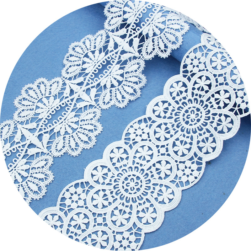 Factory wholesale milk silk hollow embroidery lace computer embroidery wide bar code curtain clothing decorative accessories
