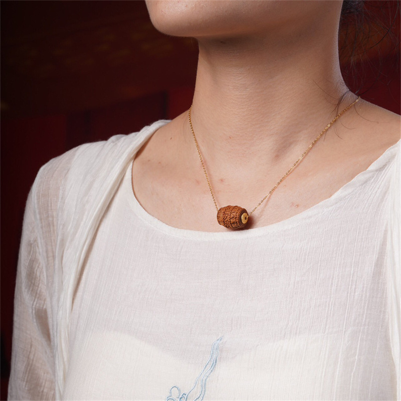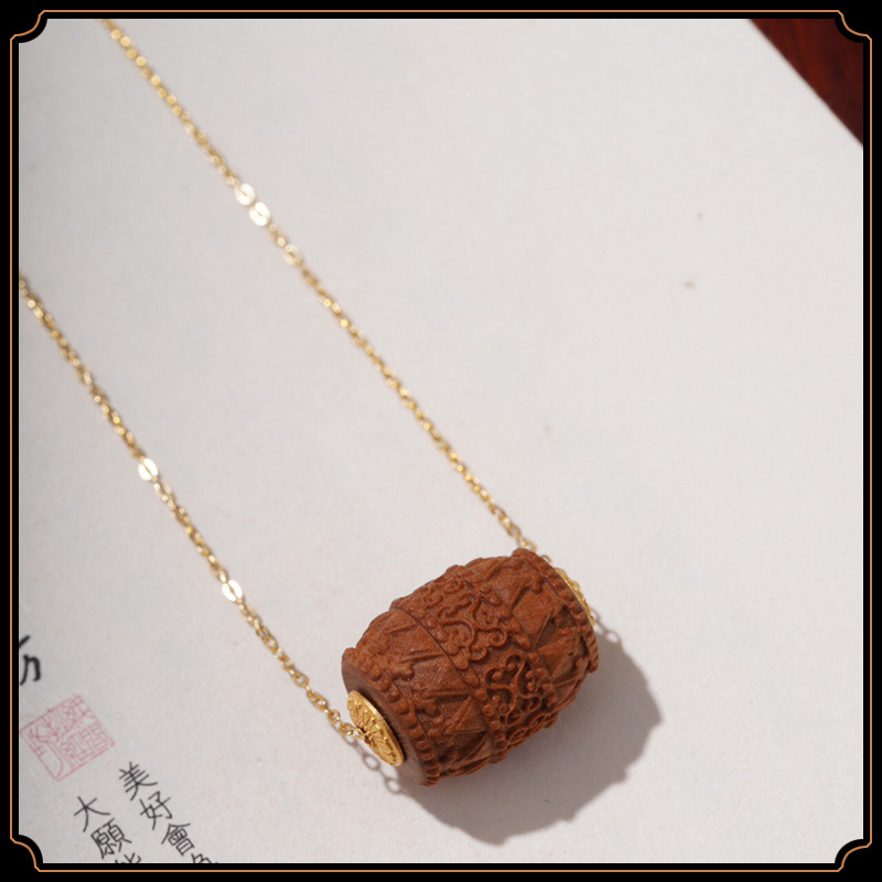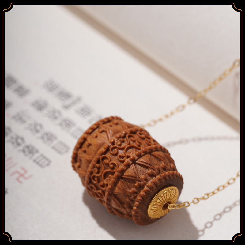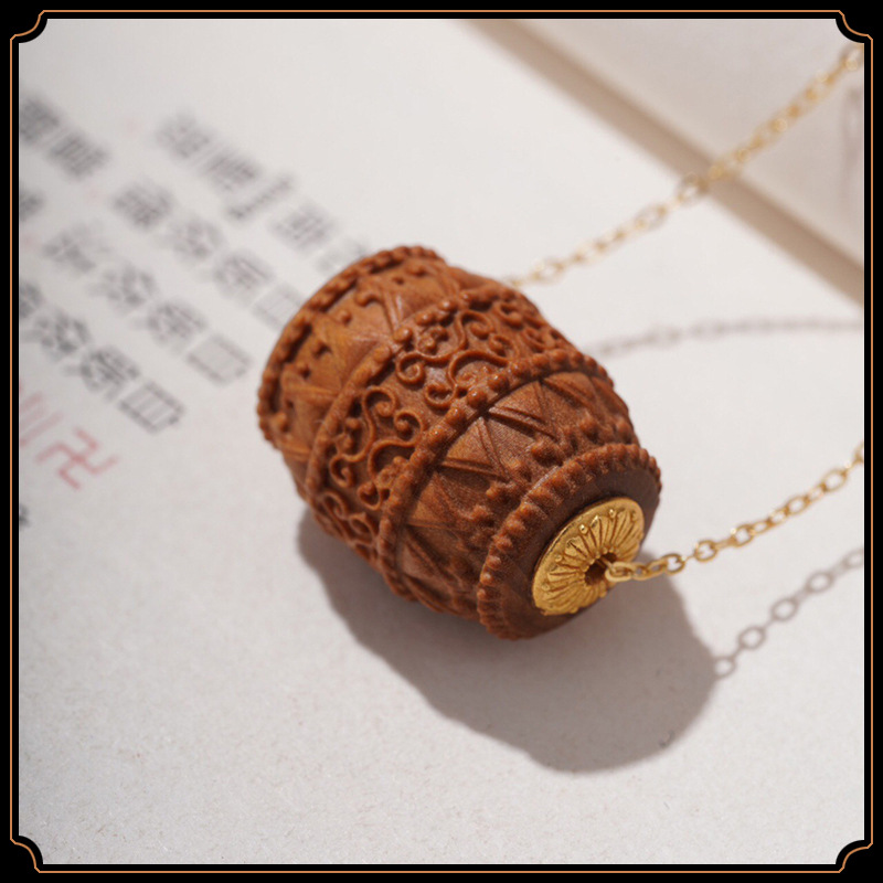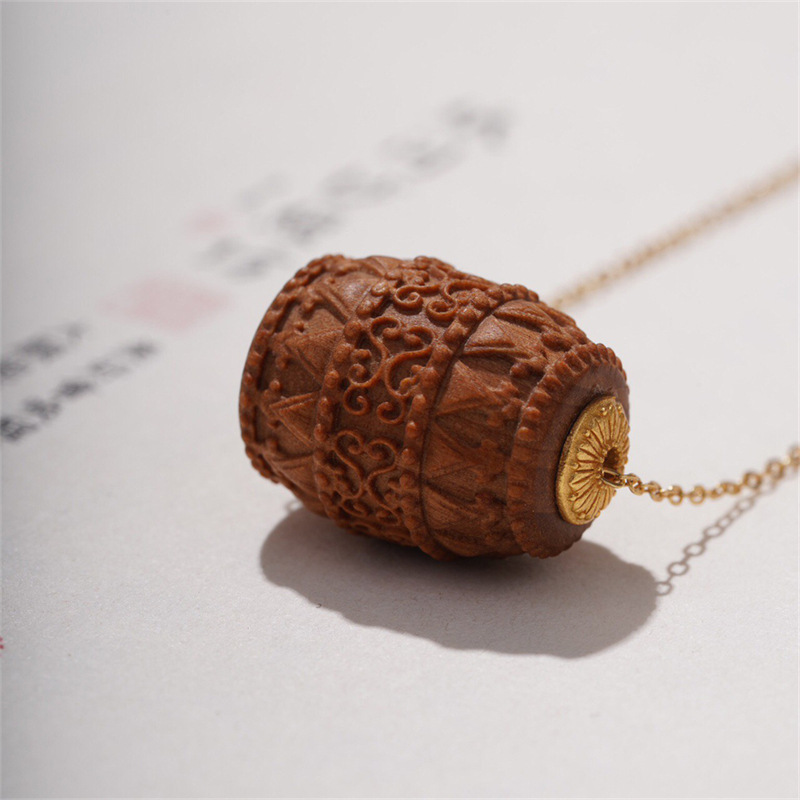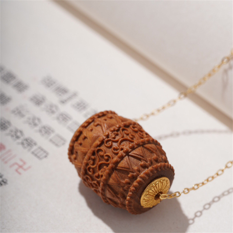 India Old Mountain Sandalwood Transfer Wheel Necklace Old Mountain Sandalwood Carving Retro National Style Transfer Wheel Wool Chain Necklace Jewelry