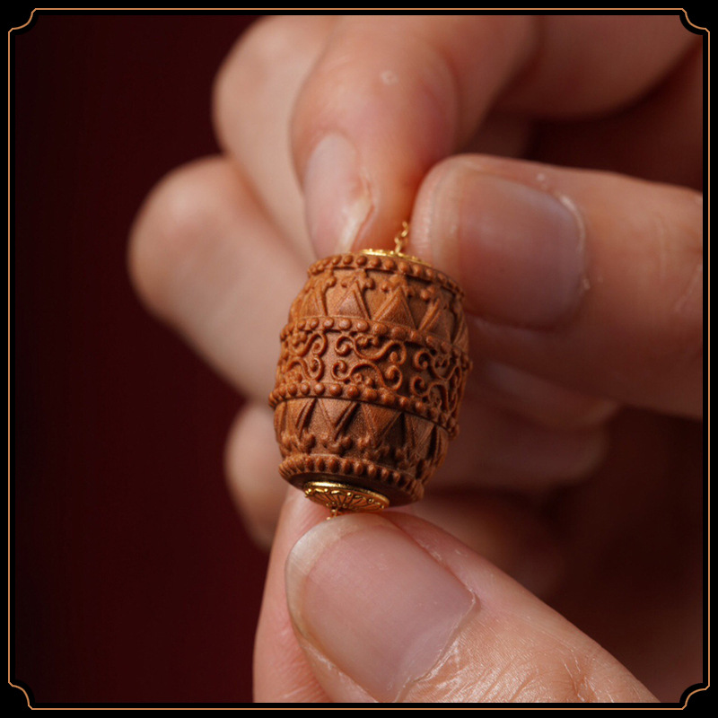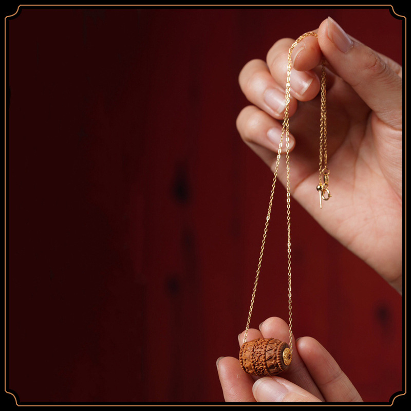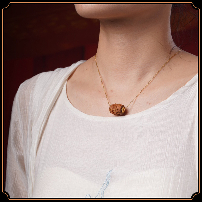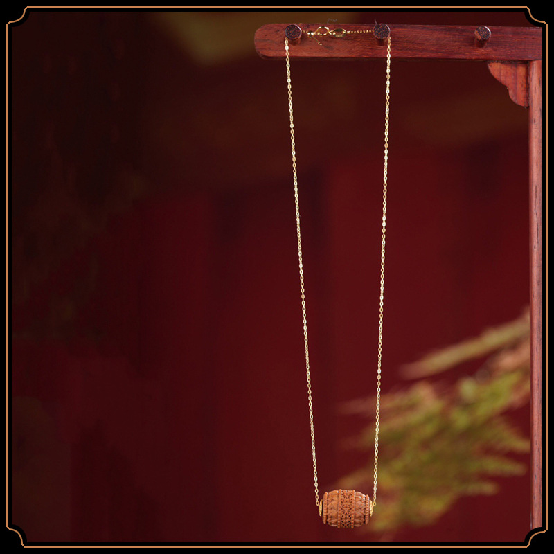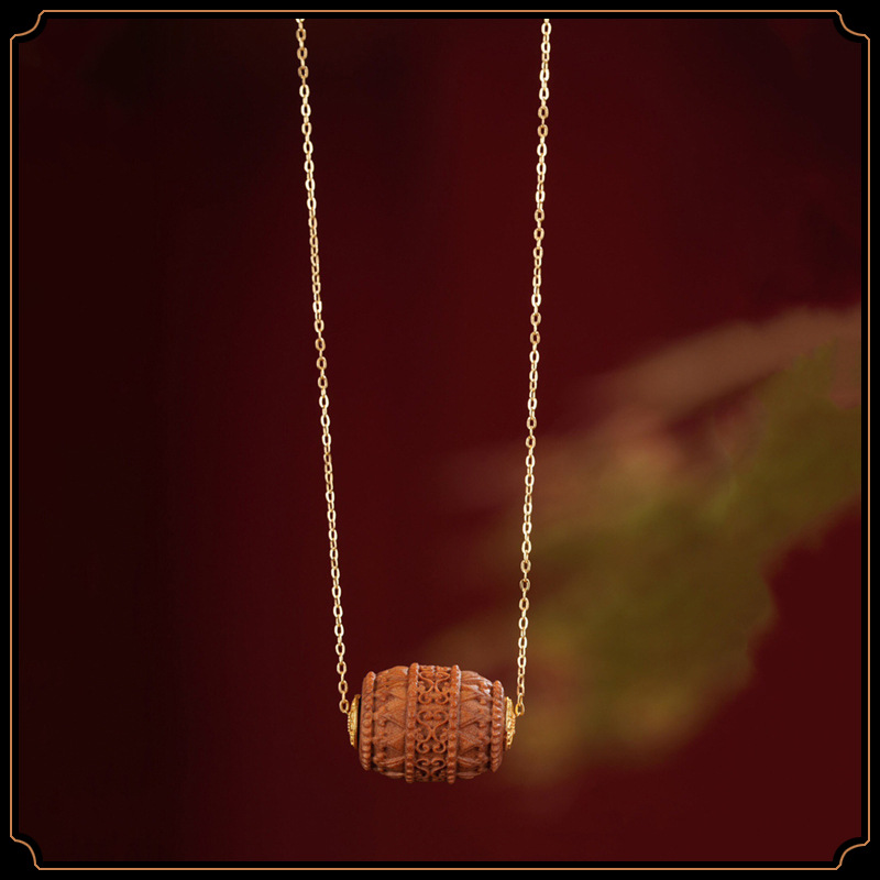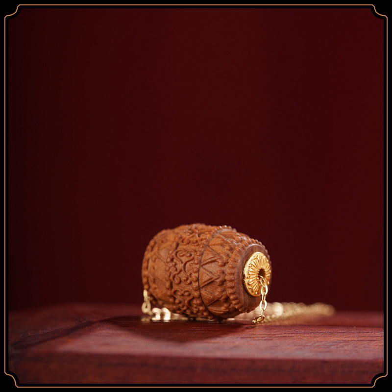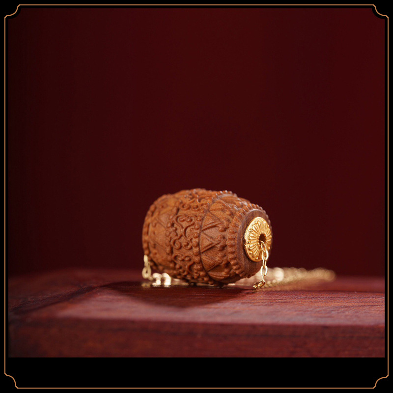 India Old Mountain Sandalwood Transfer Wheel Necklace Old Mountain Sandalwood Carving Retro National Style Transfer Wheel Wool Chain Necklace Jewelry