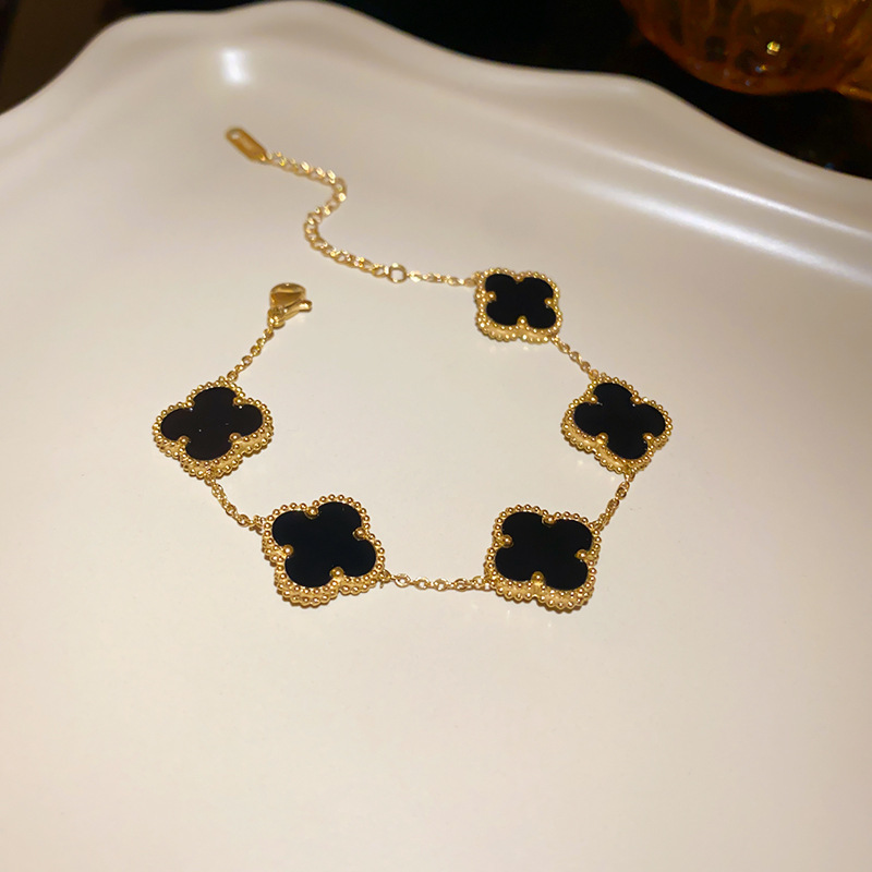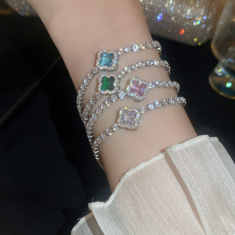 Color: 10-titanium steel diamond-encrusted four-leaf acrylic bracelet