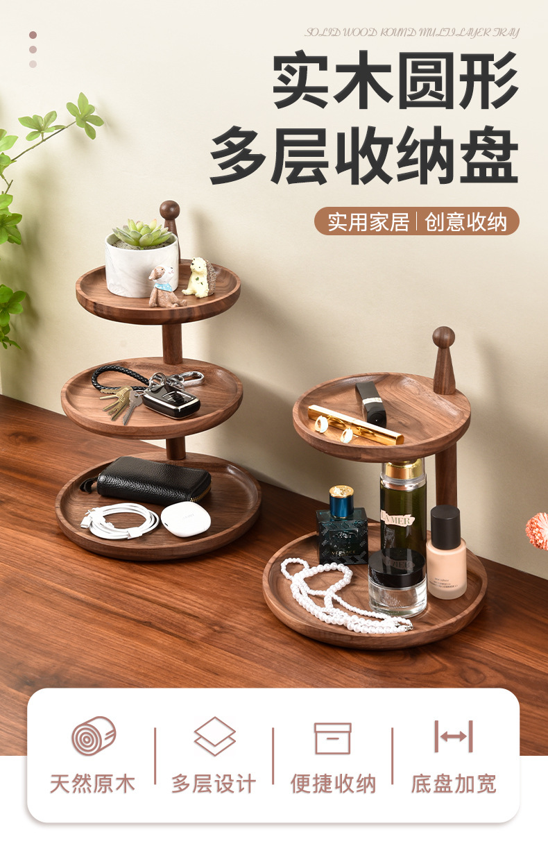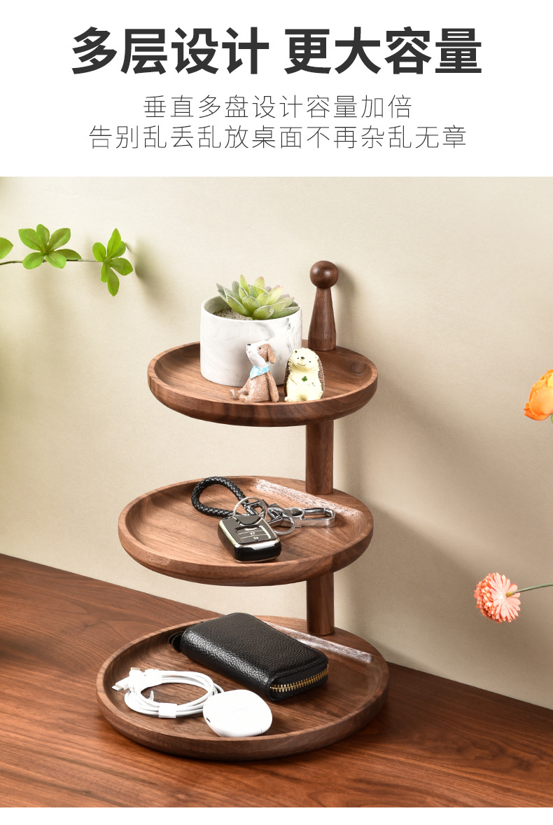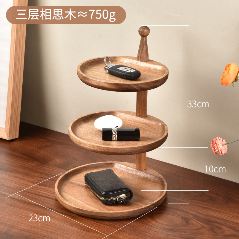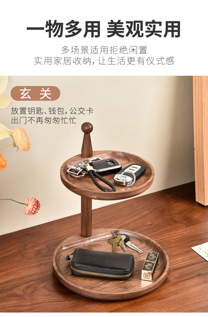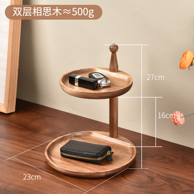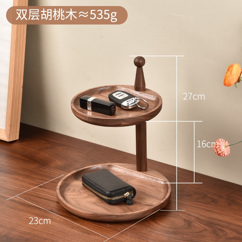 Entrance entrance entrance key storage decoration solid wood light luxury high-end double-layer storage rack desktop sundries storage box
