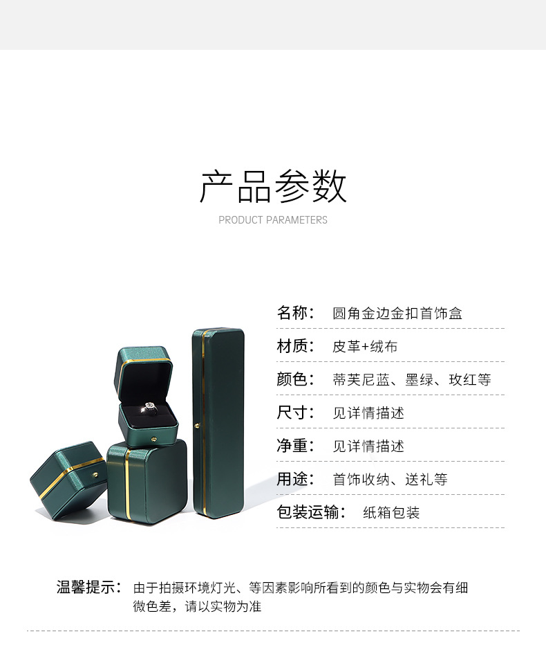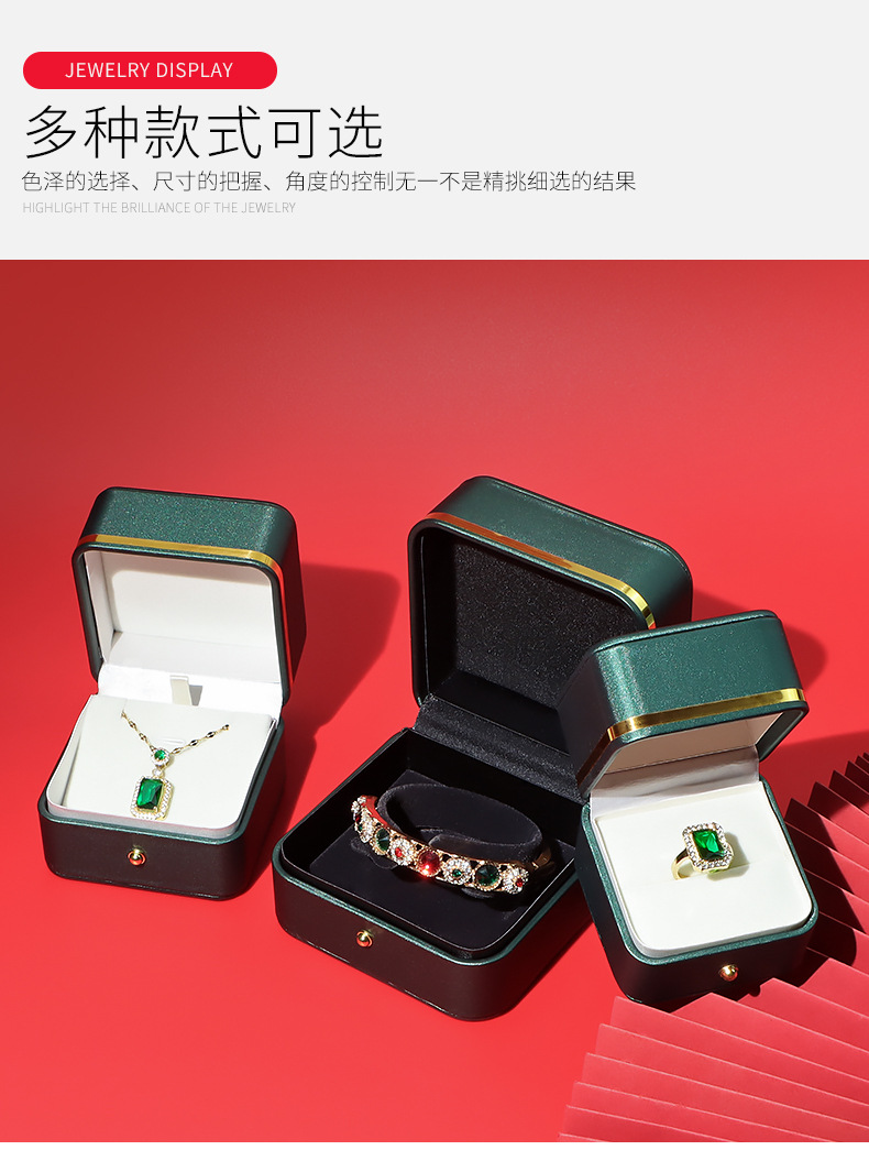 Specifications and models: Dark green inner white pendant box; jewelry box