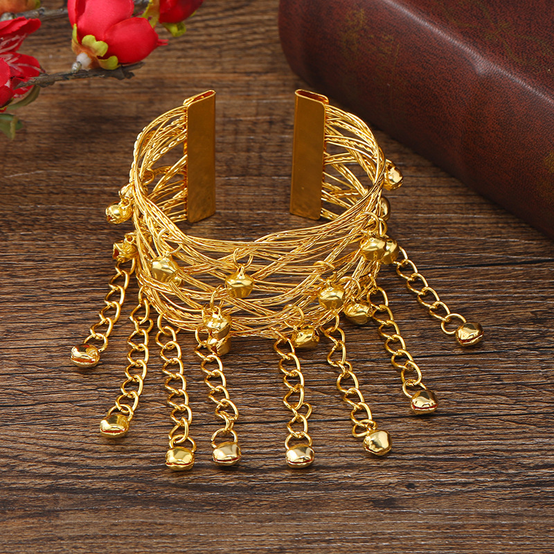 Dunhuang Ethnic Style Bell Tassel Wide Bracelet Women's Retro Indian Exodus Dance Arm Bracelet Bracelet Accessories