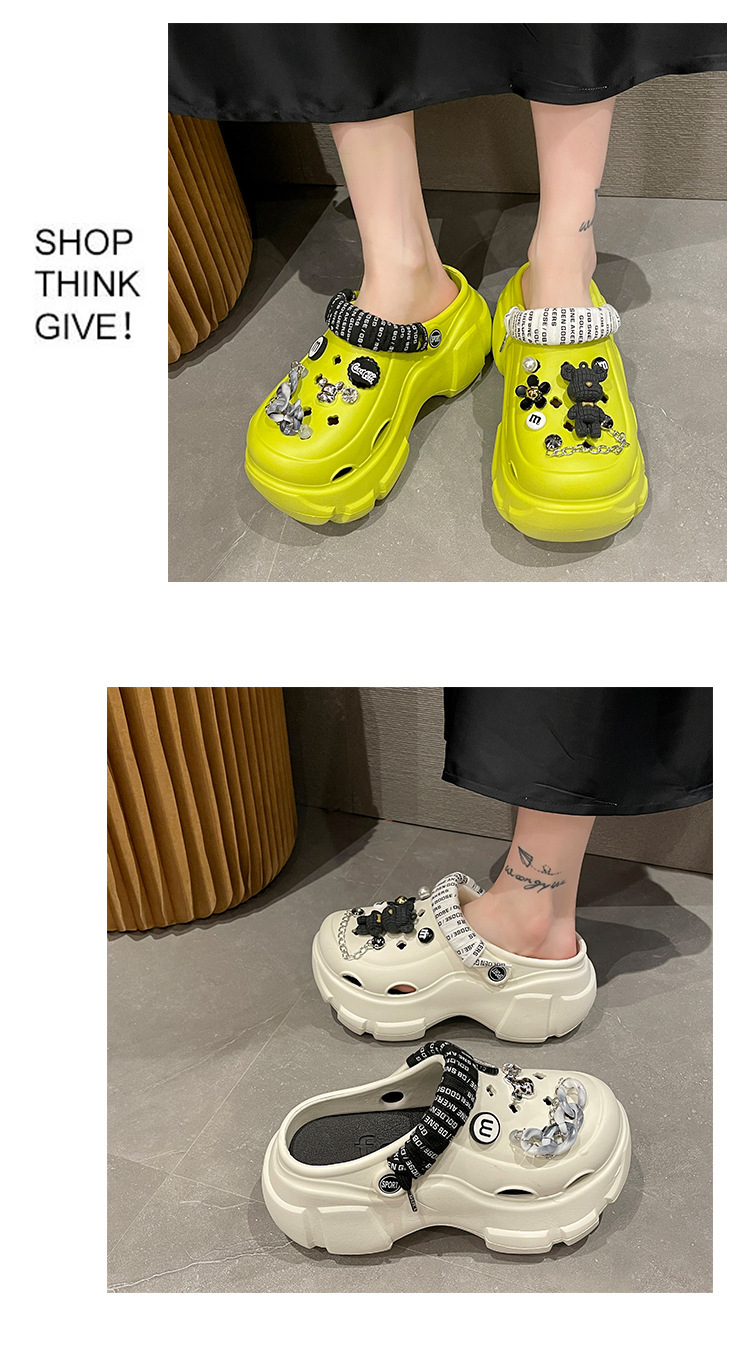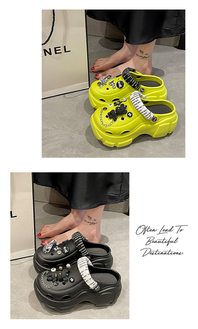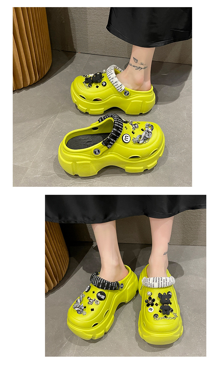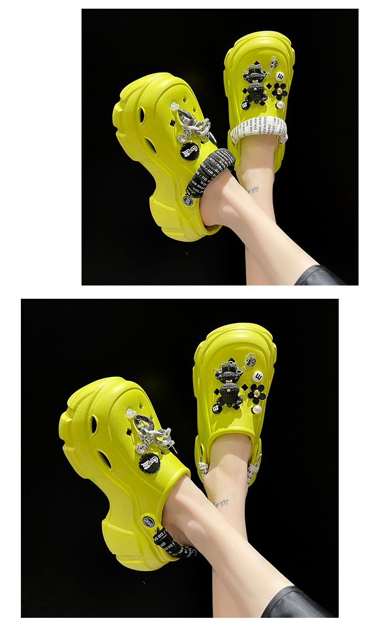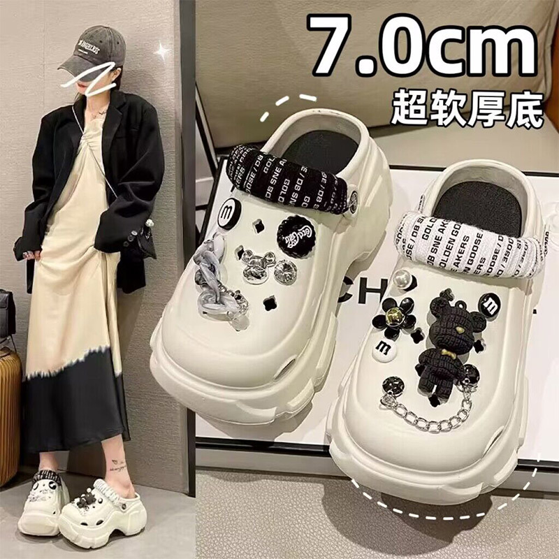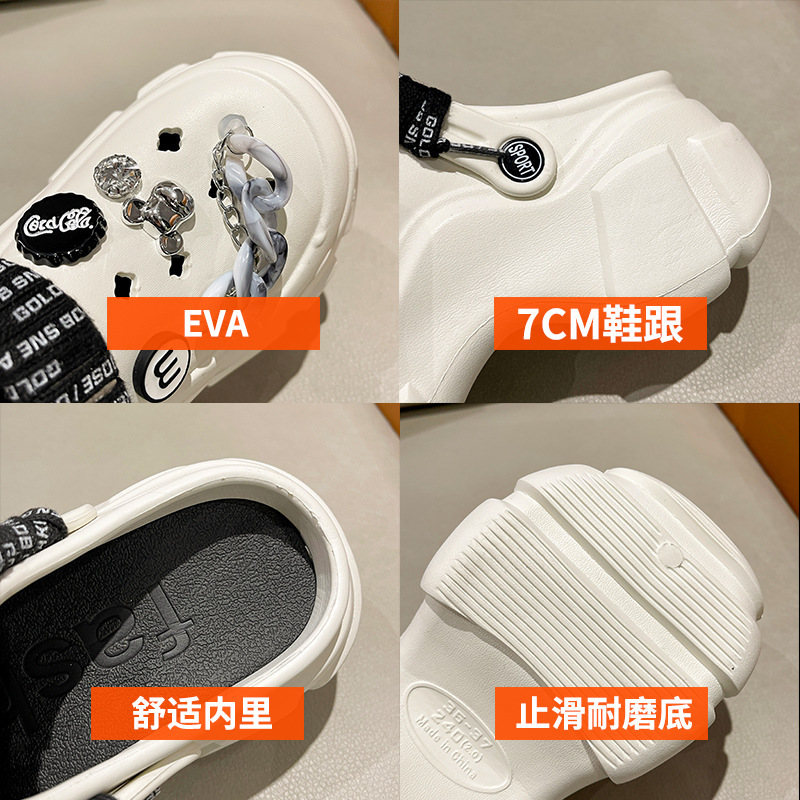 Cross-Border Hot Selling Soft High-Heeled High-Soled Clogs Eva Women's Fashion Trbottomy Baotou Heightening and Slimming Look Garden Shoes Wholesale