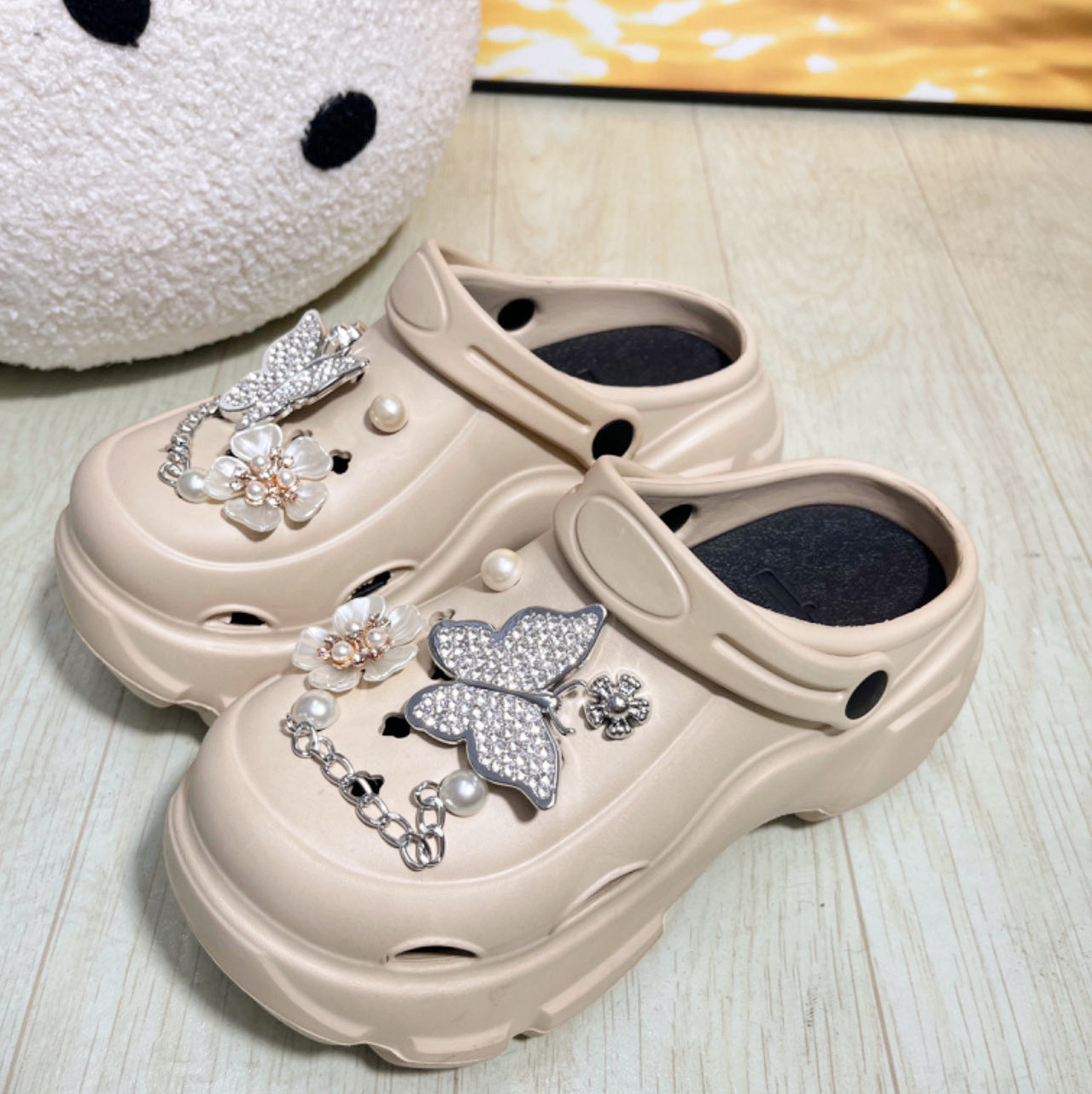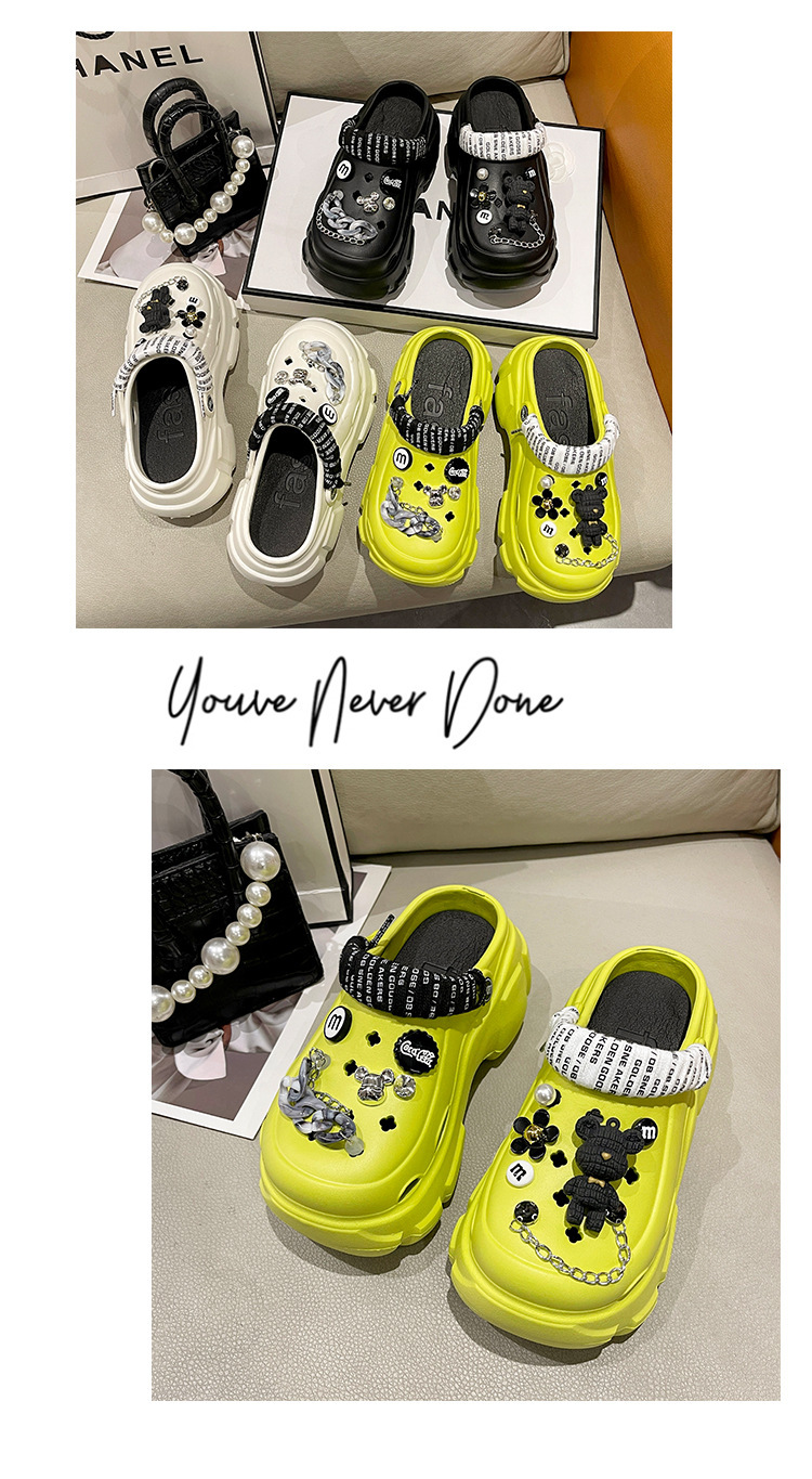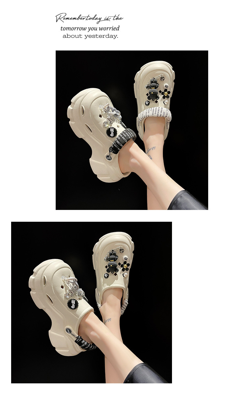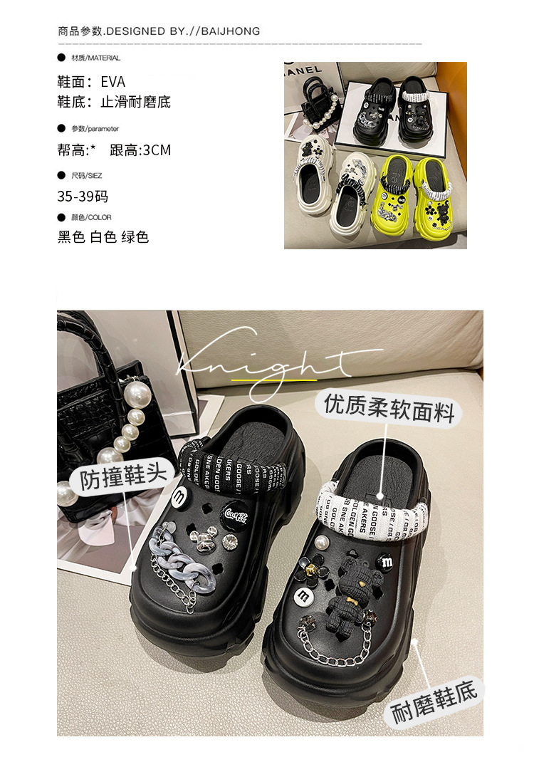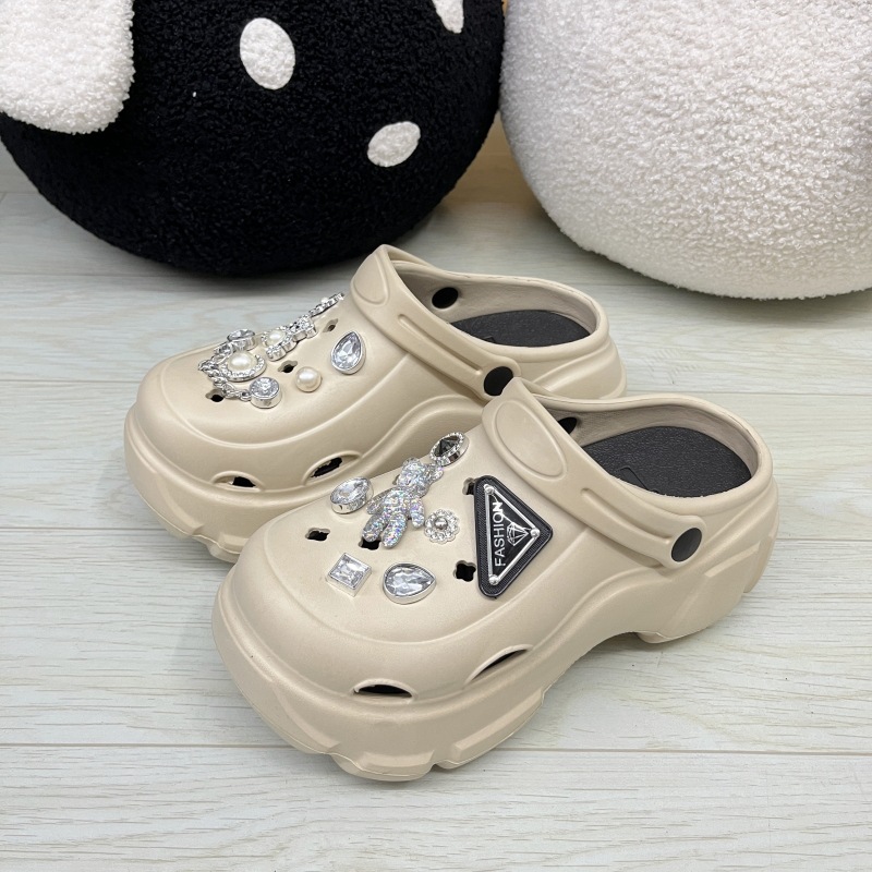 Cross-Border Hot Selling Soft High-Heeled High-Soled Clogs Eva Women's Fashion Trbottomy Baotou Heightening and Slimming Look Garden Shoes Wholesale