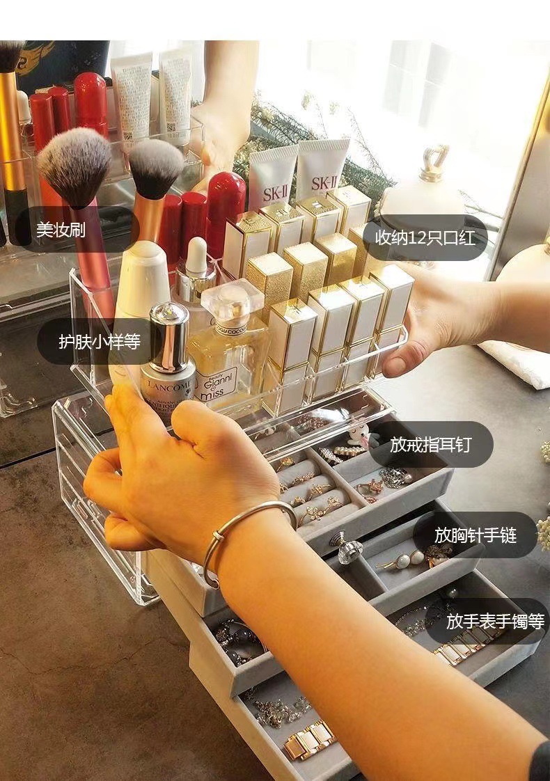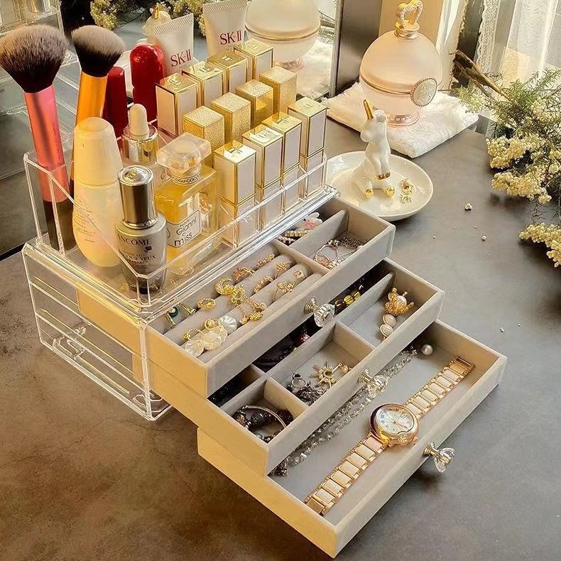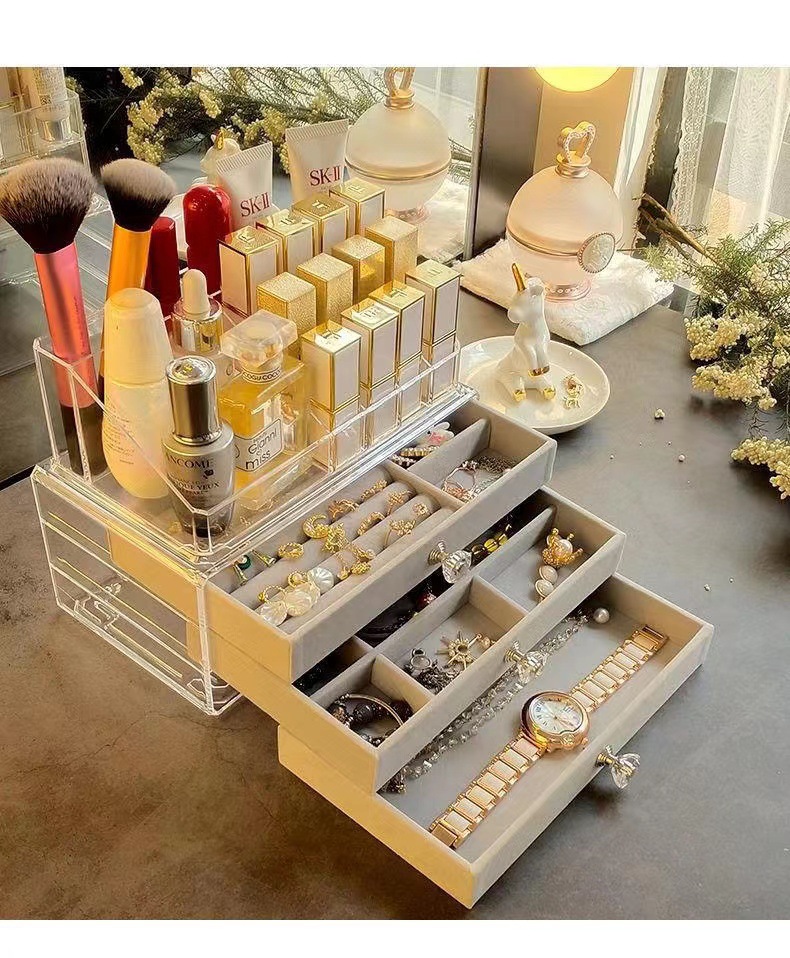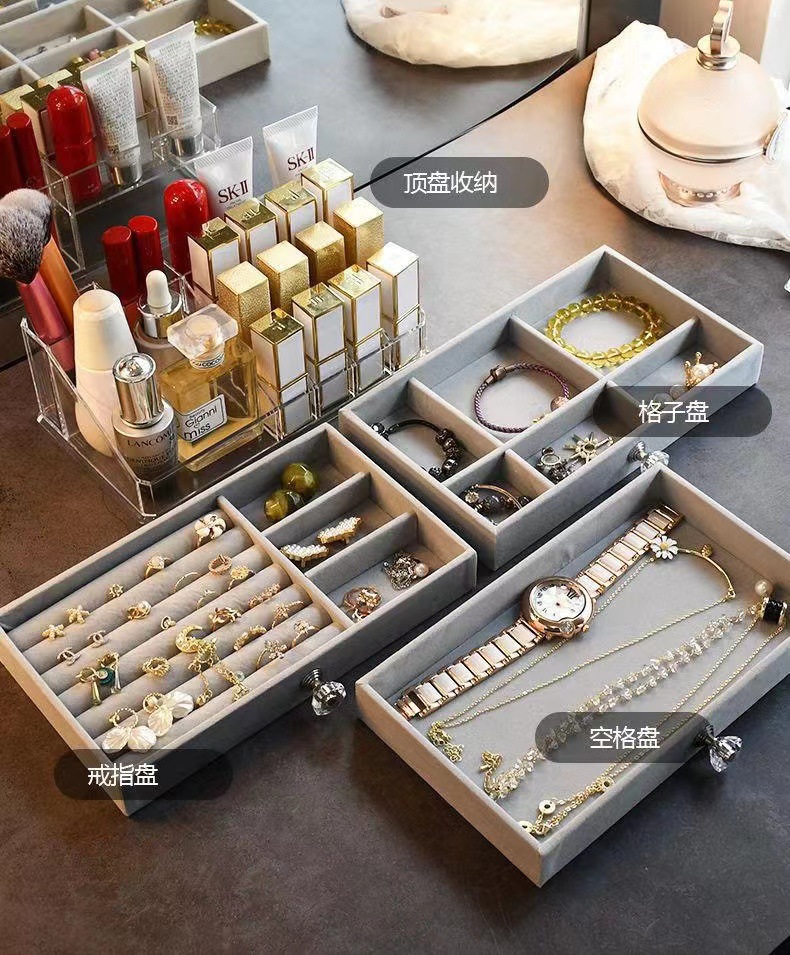 Color: Multi-functional three-layer jewelry box [Gray]]