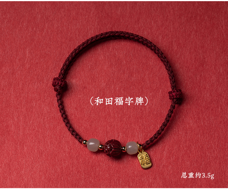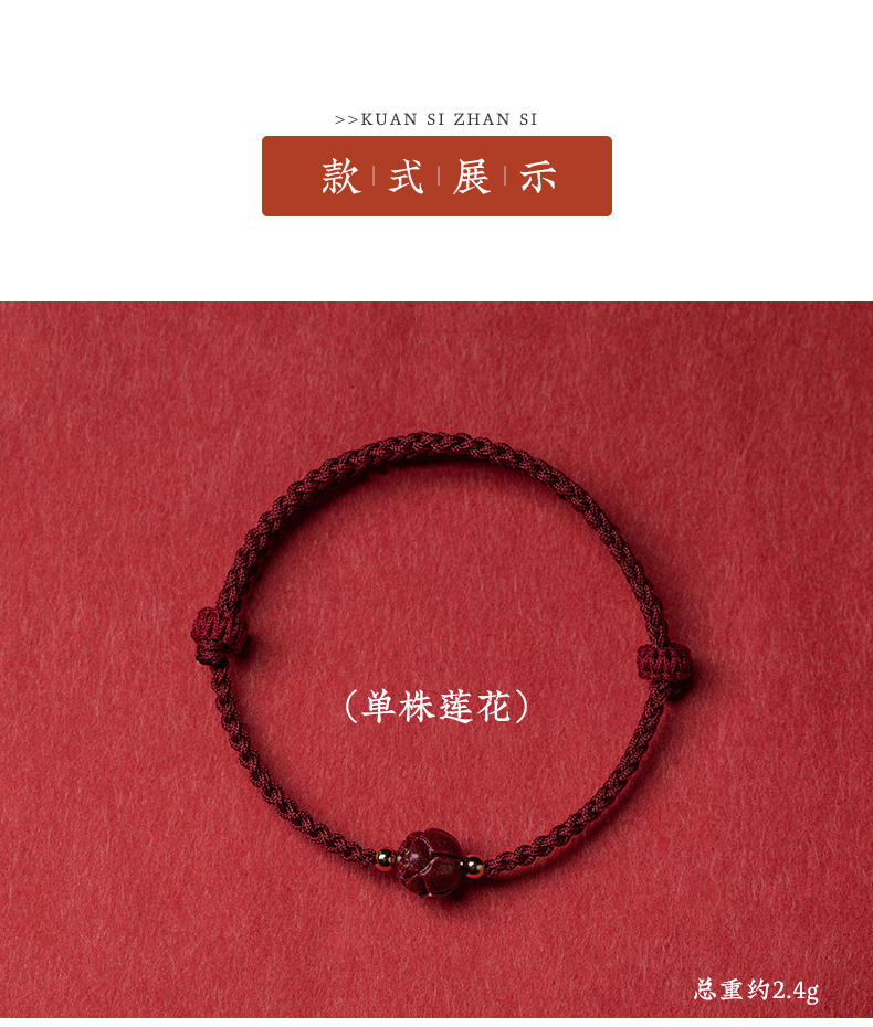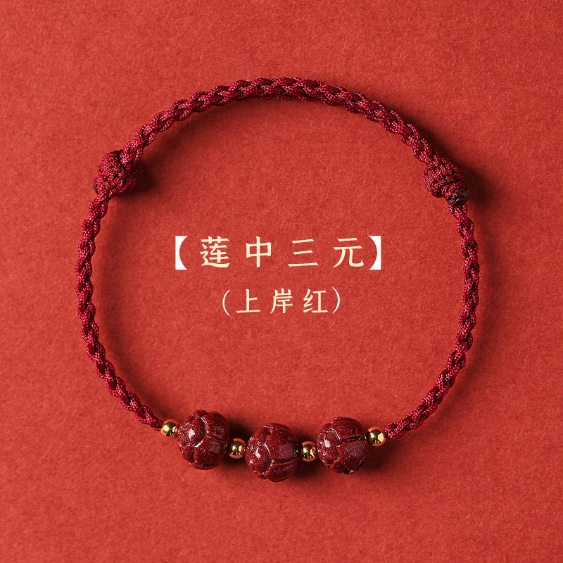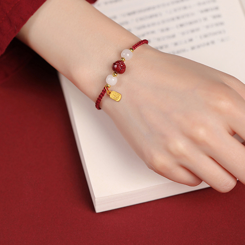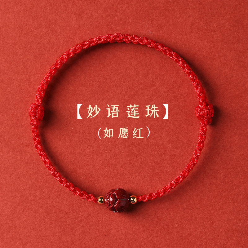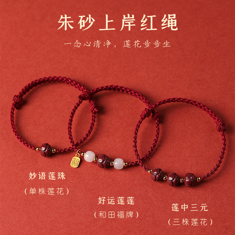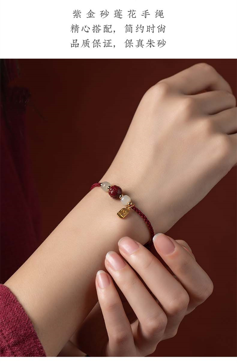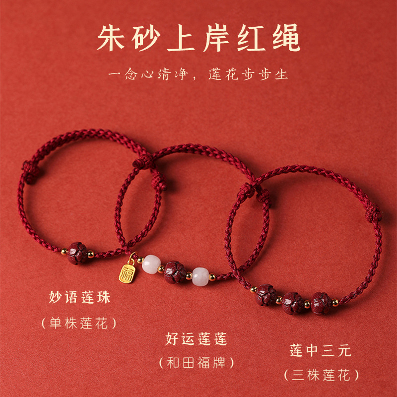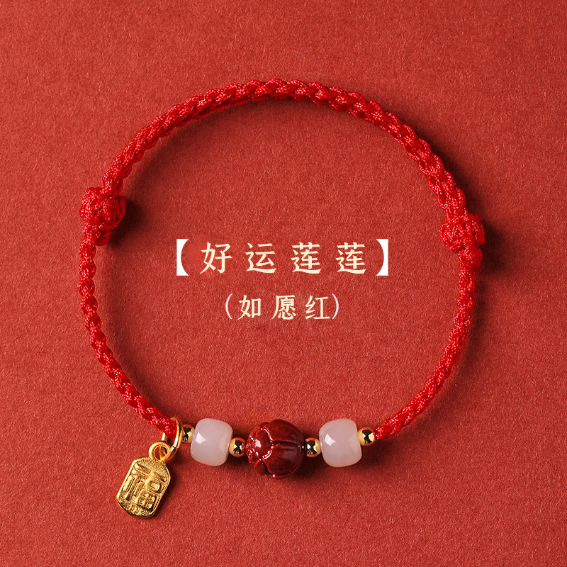 Landing Bracelet Women's Lotus Good Luck Luck Bracelet Red Rope Cinnabar and Hetian Jade Zodiac Year Gift for High School and College Entrance Examination