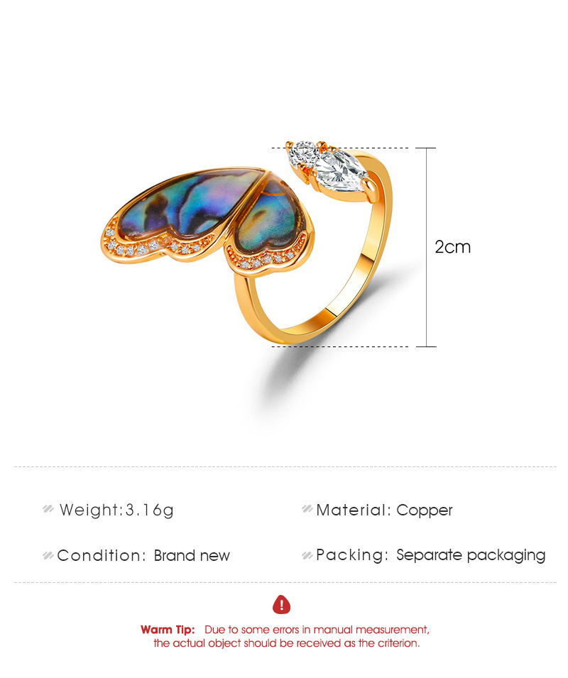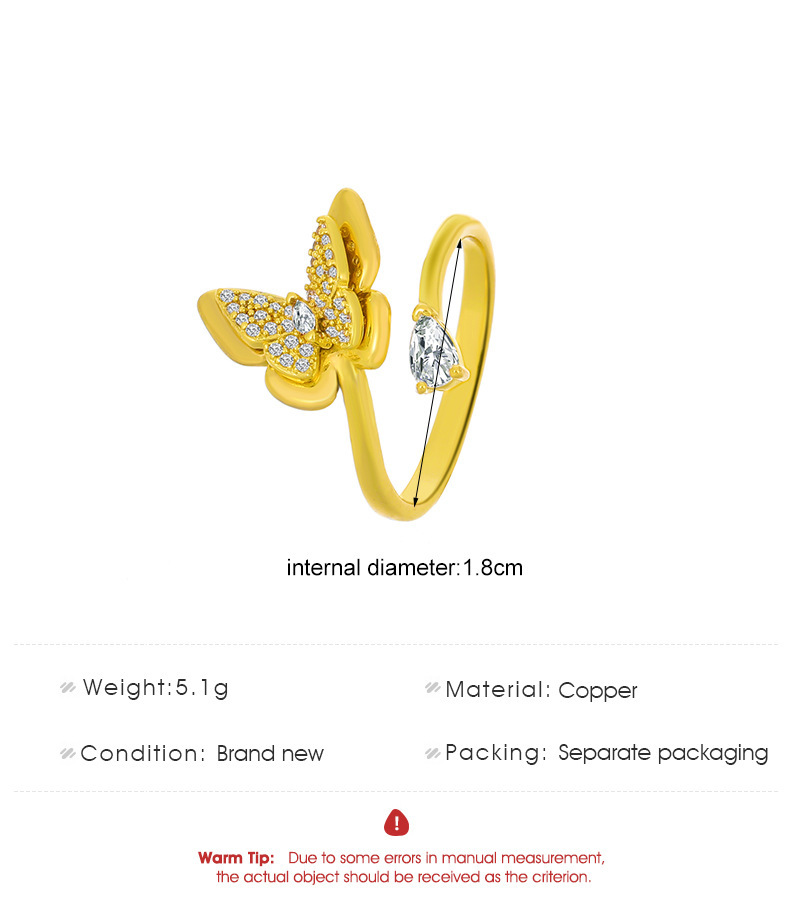 Color: Copper water drop zircon butterfly ring gun black wg-0362