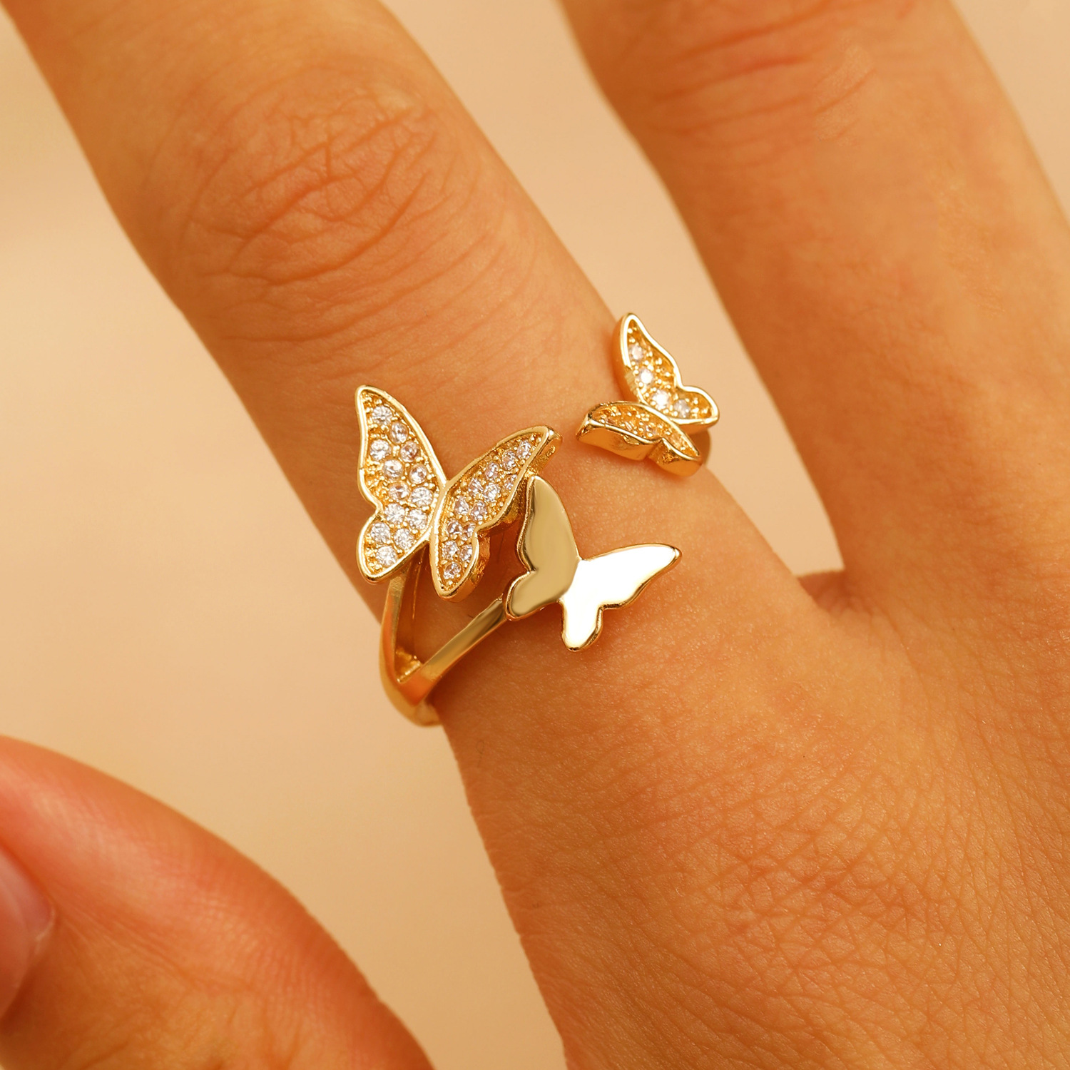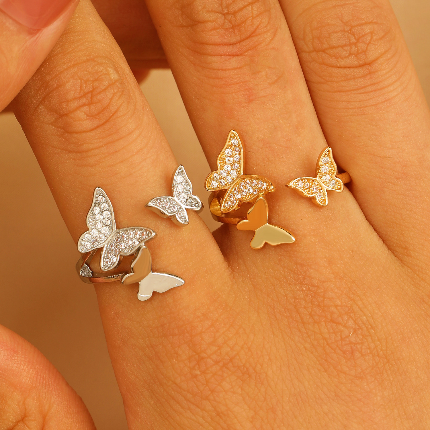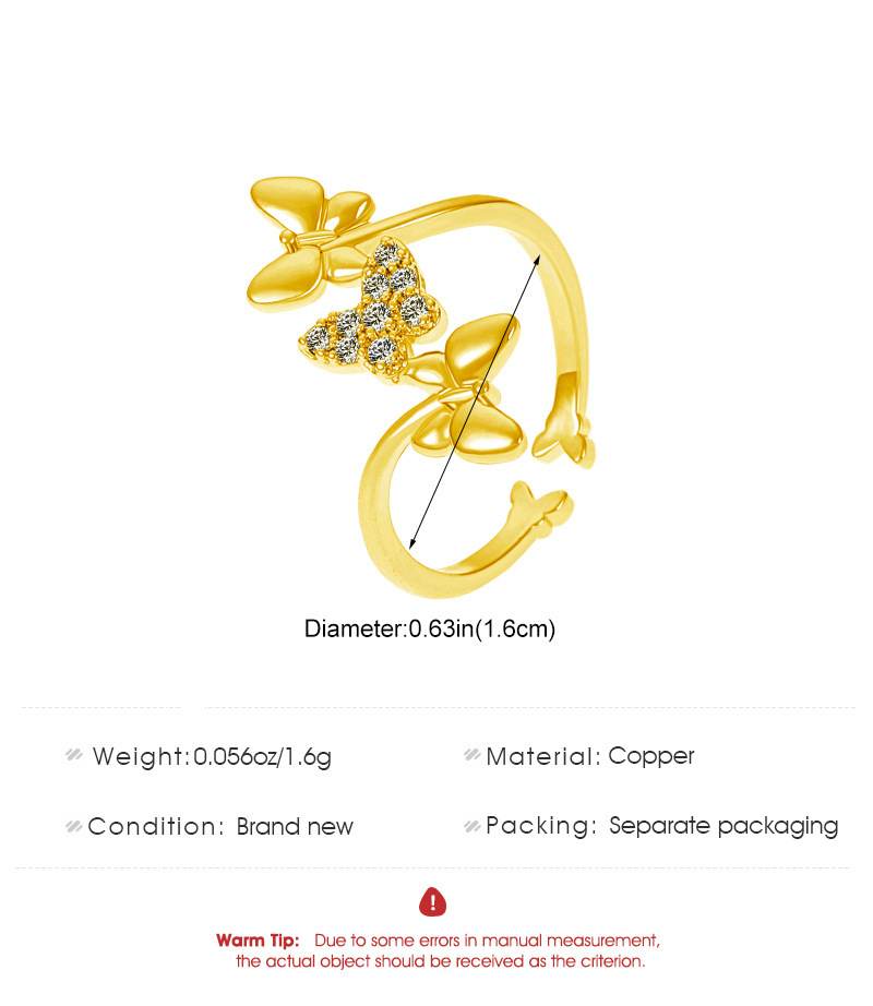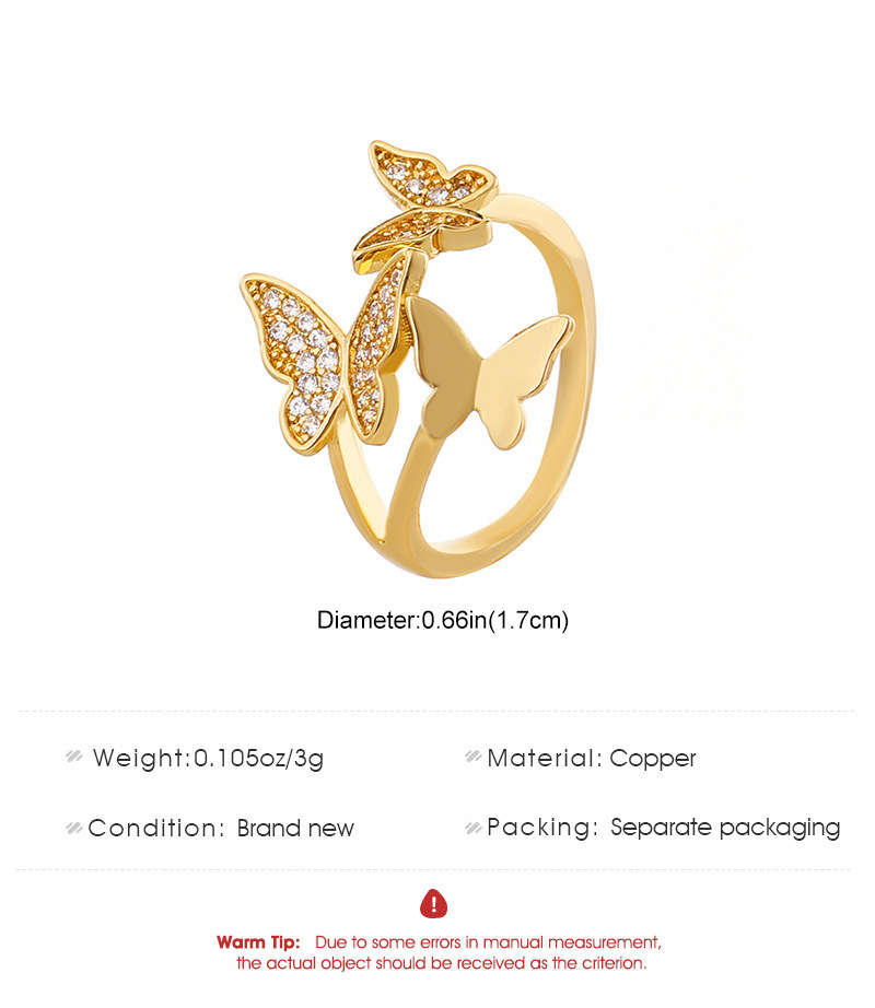 Cross-Border New Three Butterfly Rings for Women European and American Ins Style Creative Design Copper Diamond Butterfly Index Finger Rings Wholesale