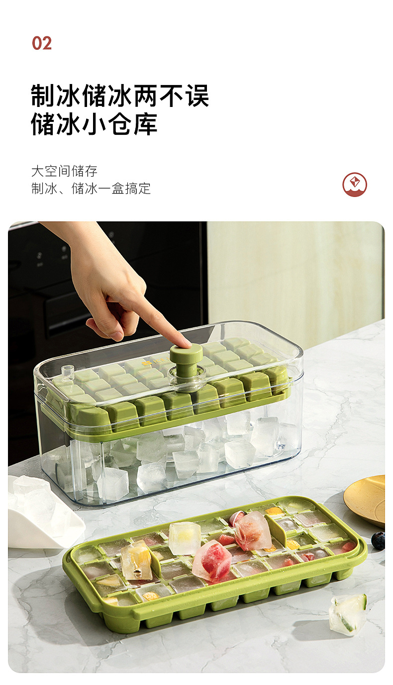Press-Type Ice Cube Mold for Home Use, Ice Storage Box for Freezing Ice Cubes, Easy-To-Demold Quick-Freezing Tool for Home Use