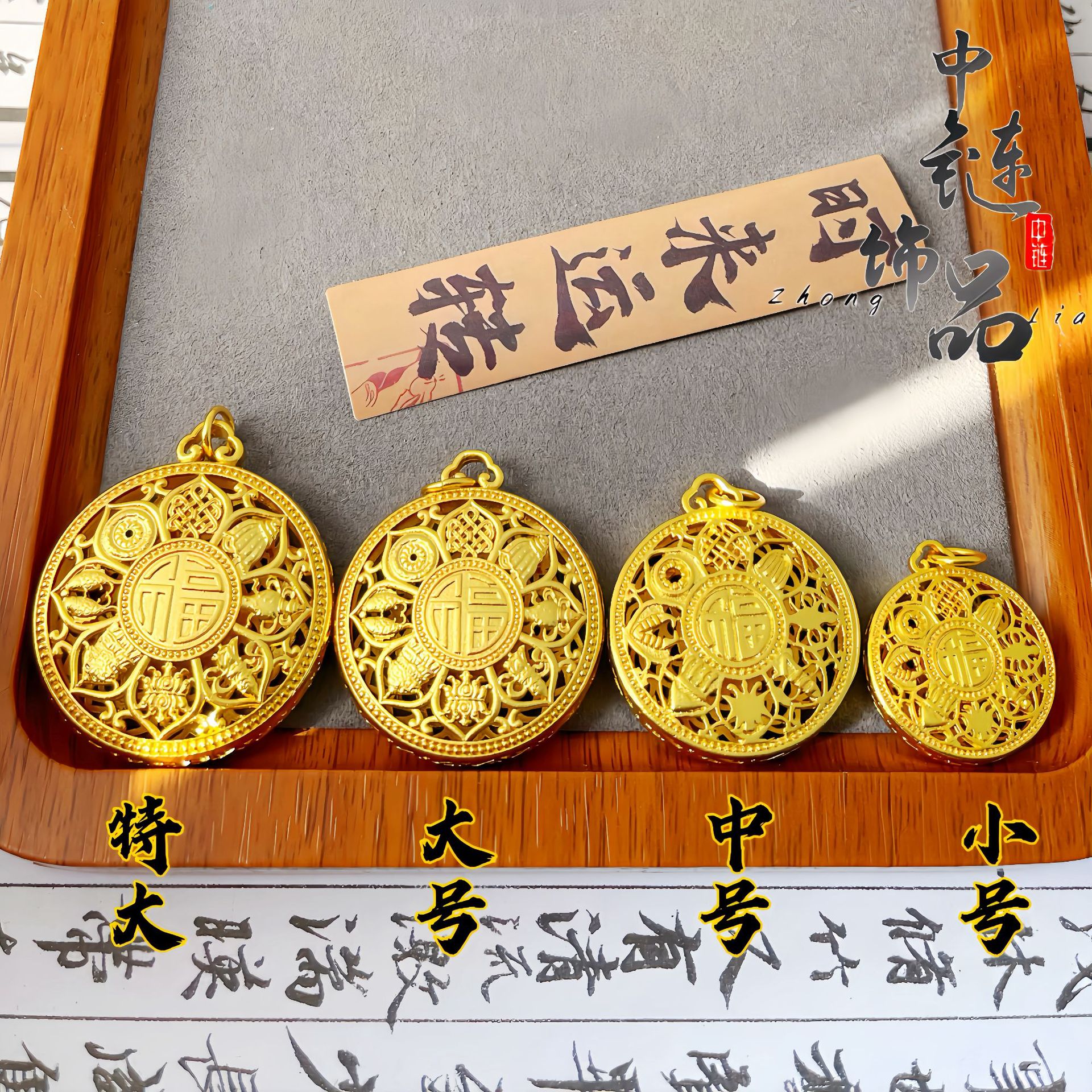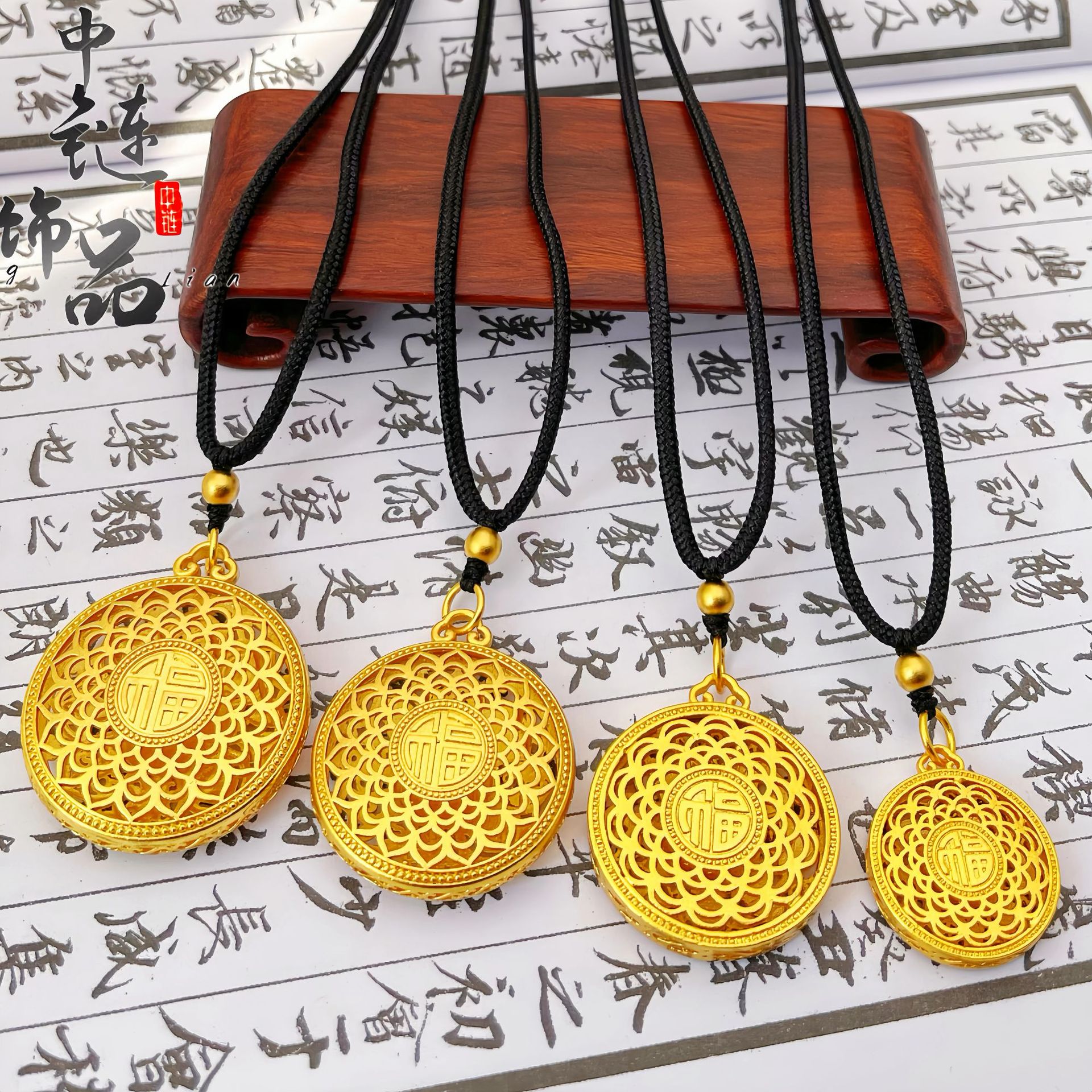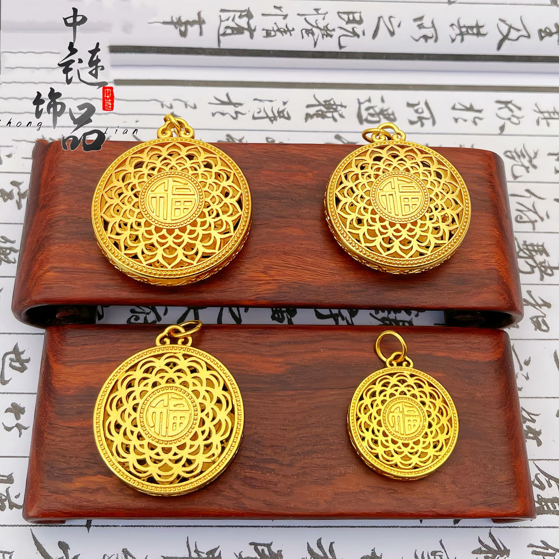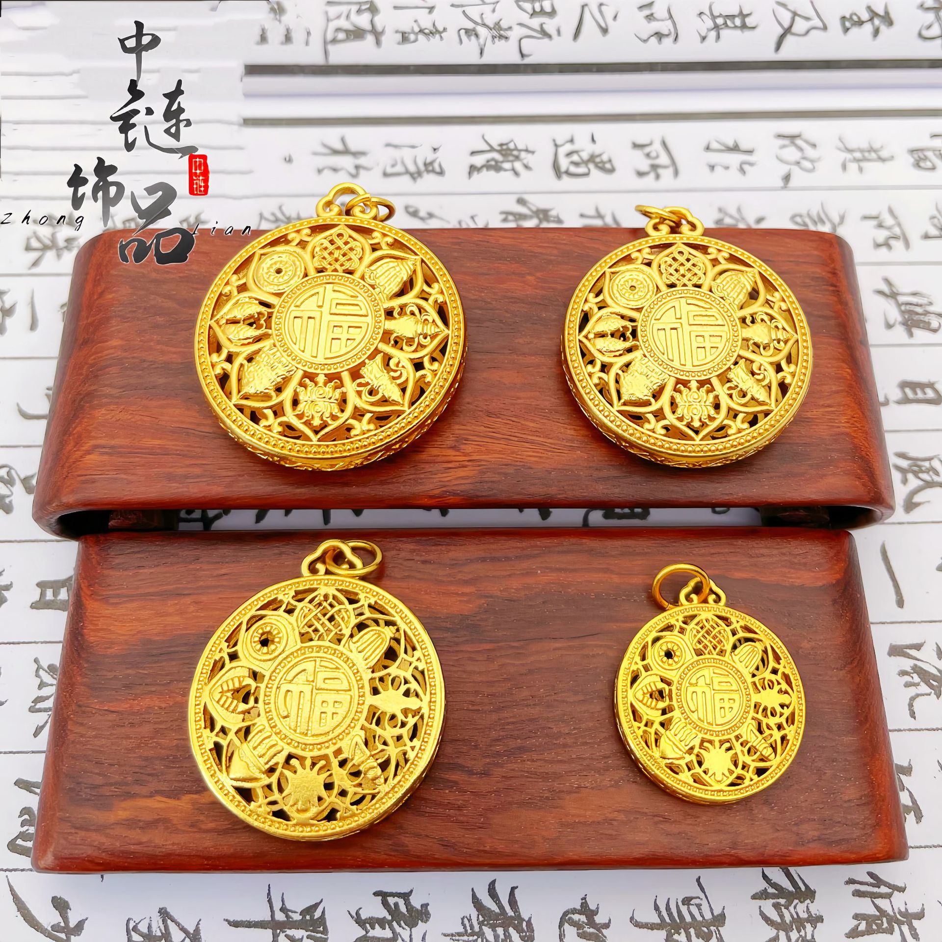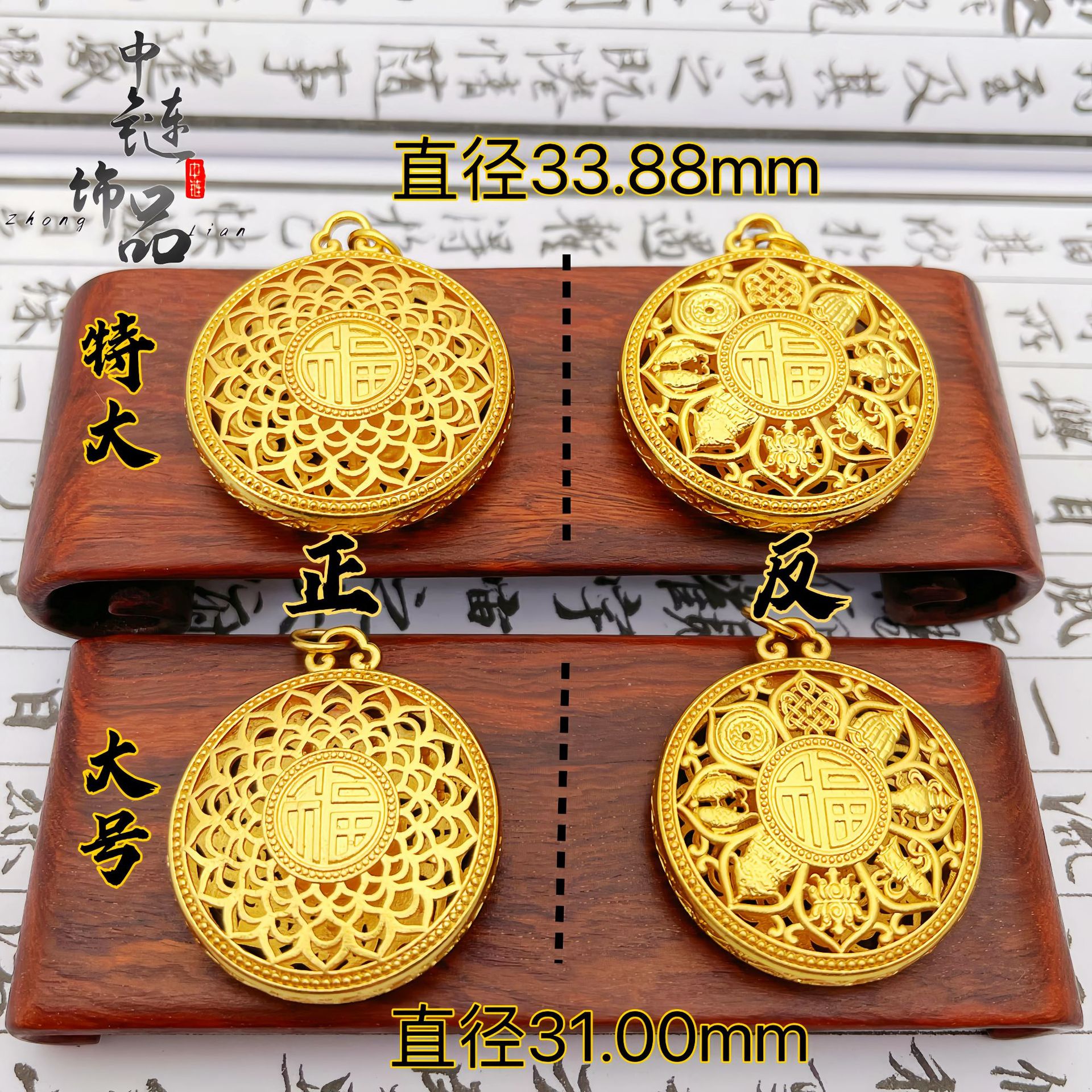 Vietnam Sand Gold Fine Eight Treasure Compass Hollow Lotus Pendant Brass Gold Plated Ancient Fafu Compass Pendant Necklace