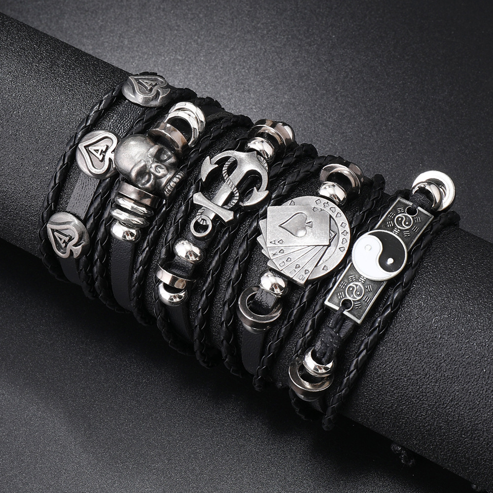 品名:新款朋克风骷髅头船锚diy手绳
