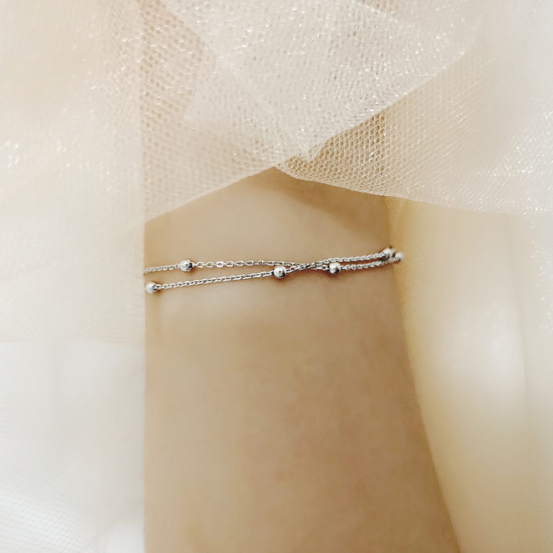 产品名称:双层圆珠手链材质:锌合金颜色:金色,银色尺寸:21+5cm左右重量:4g包装:透明opp袋独立包装