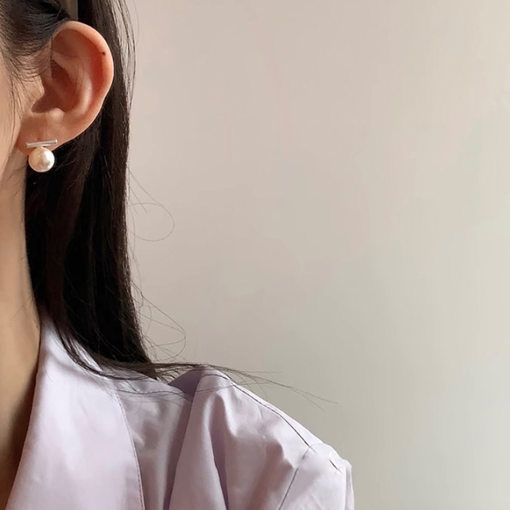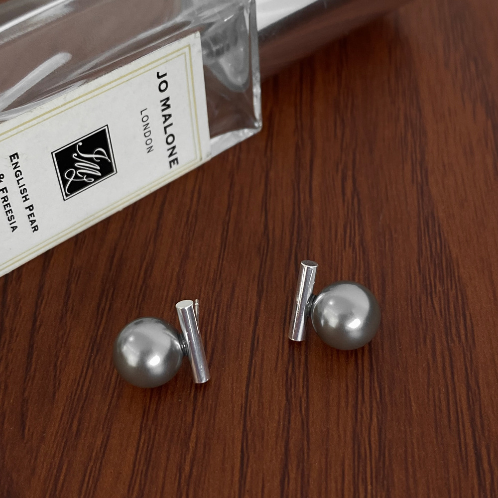 Color: A-560 one-word silver gray bright pearl earrings 925 silver needle