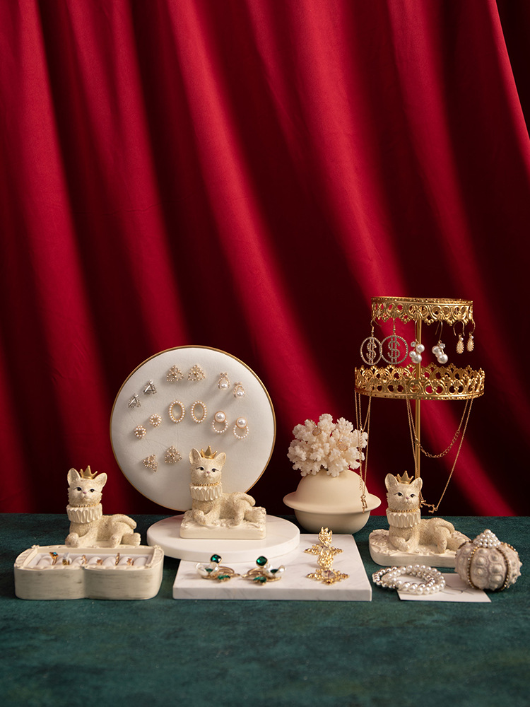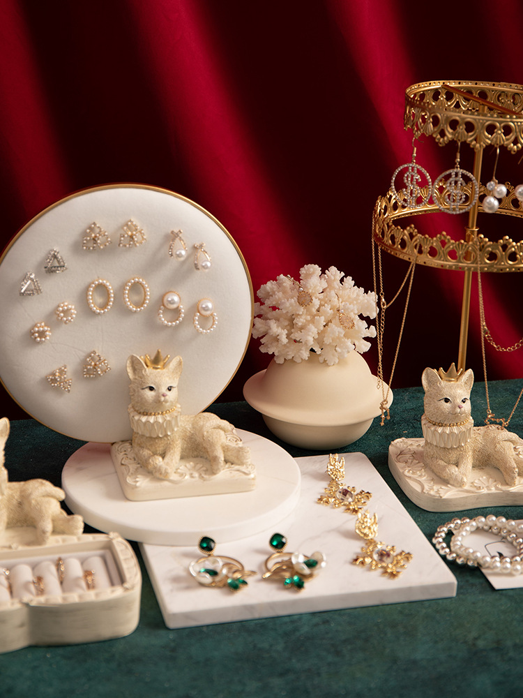 Jewelry Display rack cat shape ring plate necklace rack earrings storage velvet board jewelry display shooting props