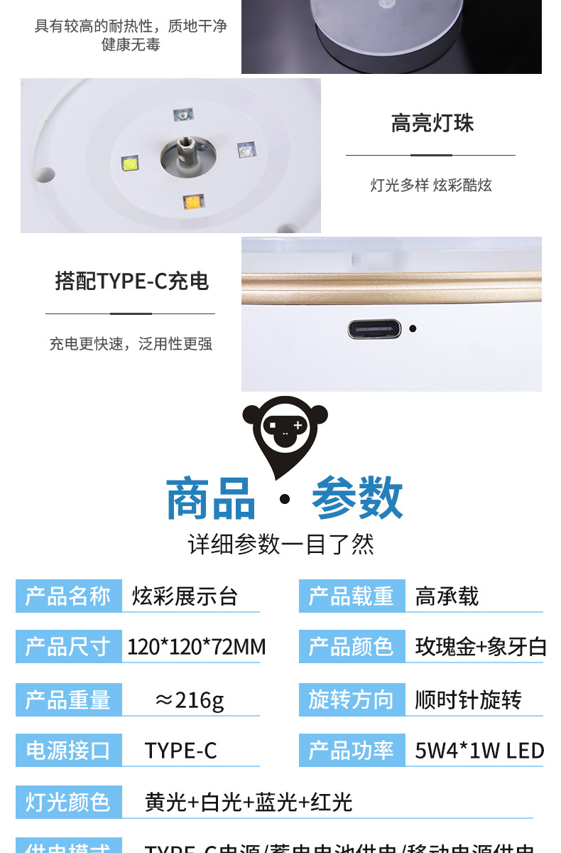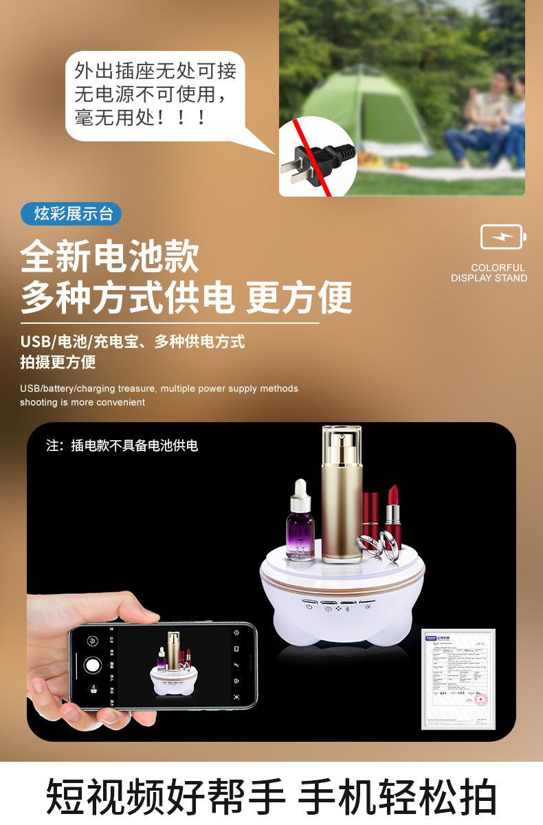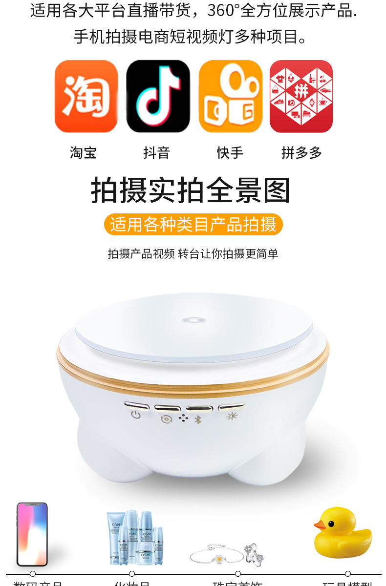 Cross-border rotating display stand charging luminous base automatic adjustment transparent electric rotating disc tremolo live broadcast turntable
