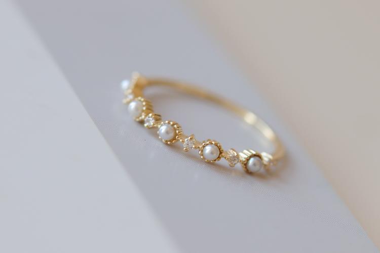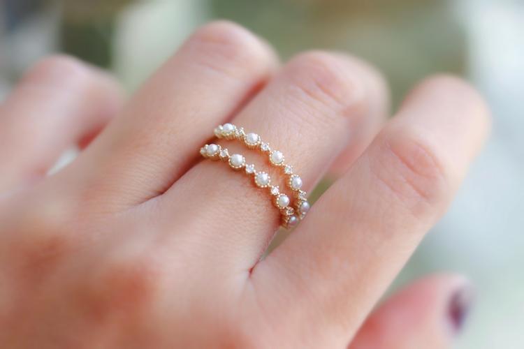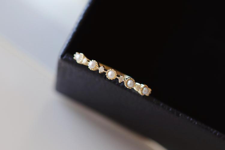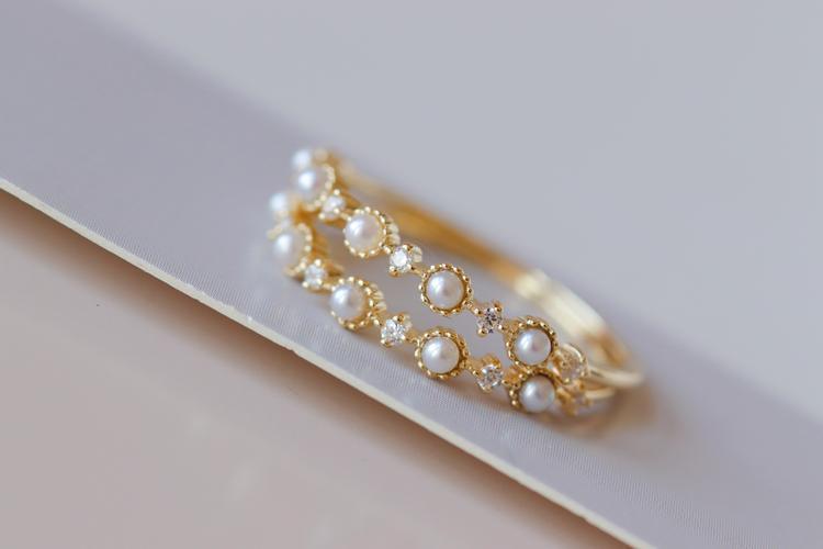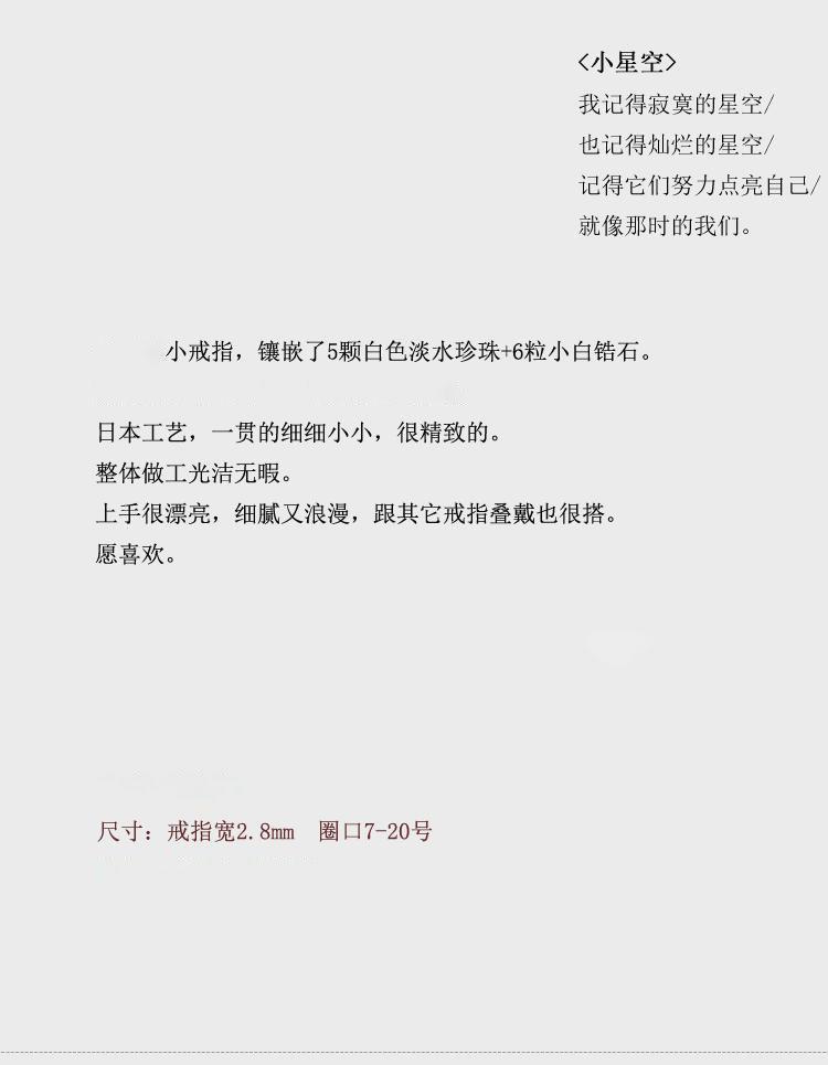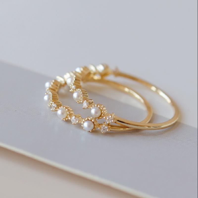 [Little Starry Sky] Women's Inlaid Anti-Freshwater Pearl Ring Instagram Japanese Light Luxury Fine Finger Ring Overlapping Mix and Match