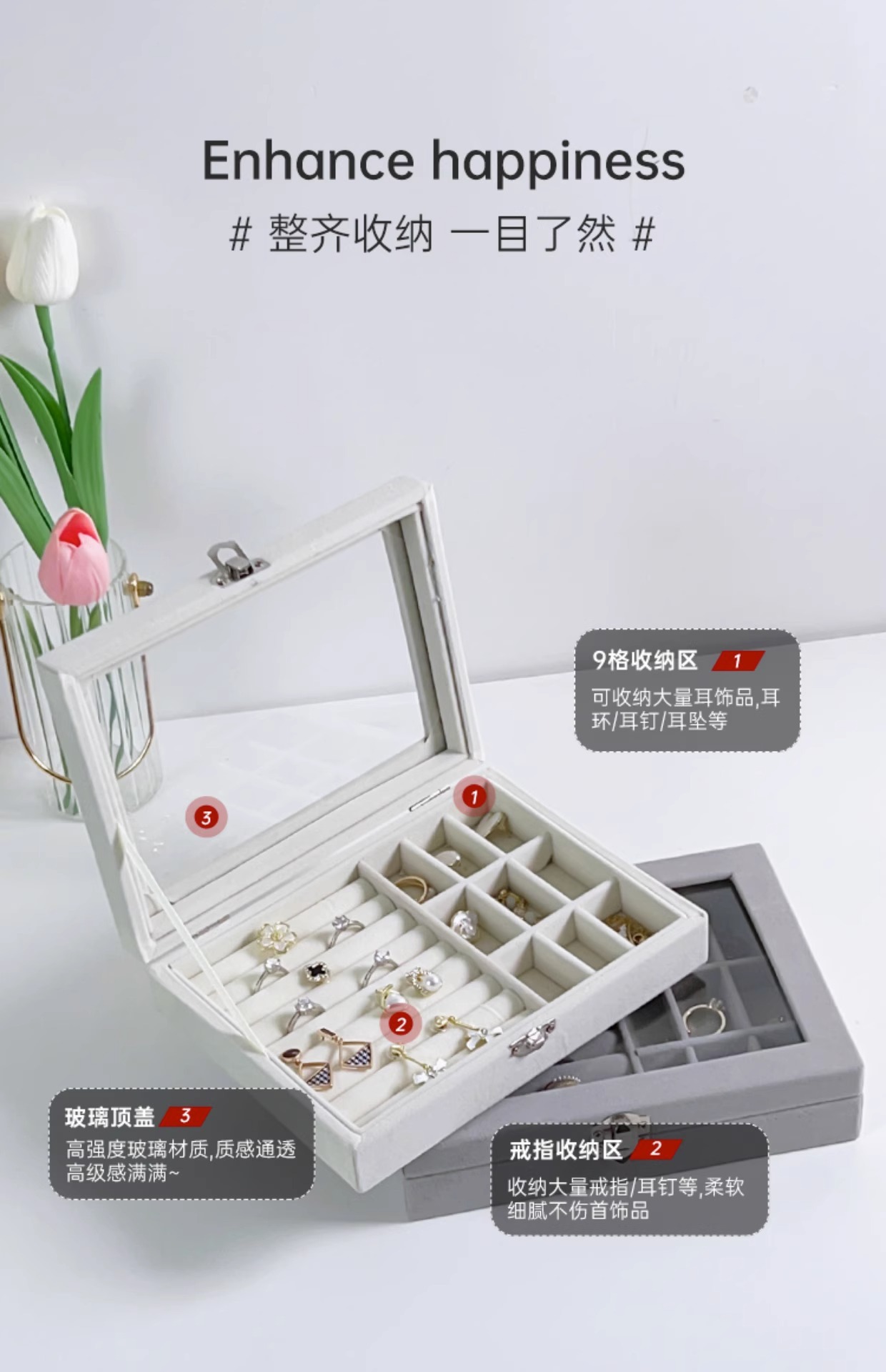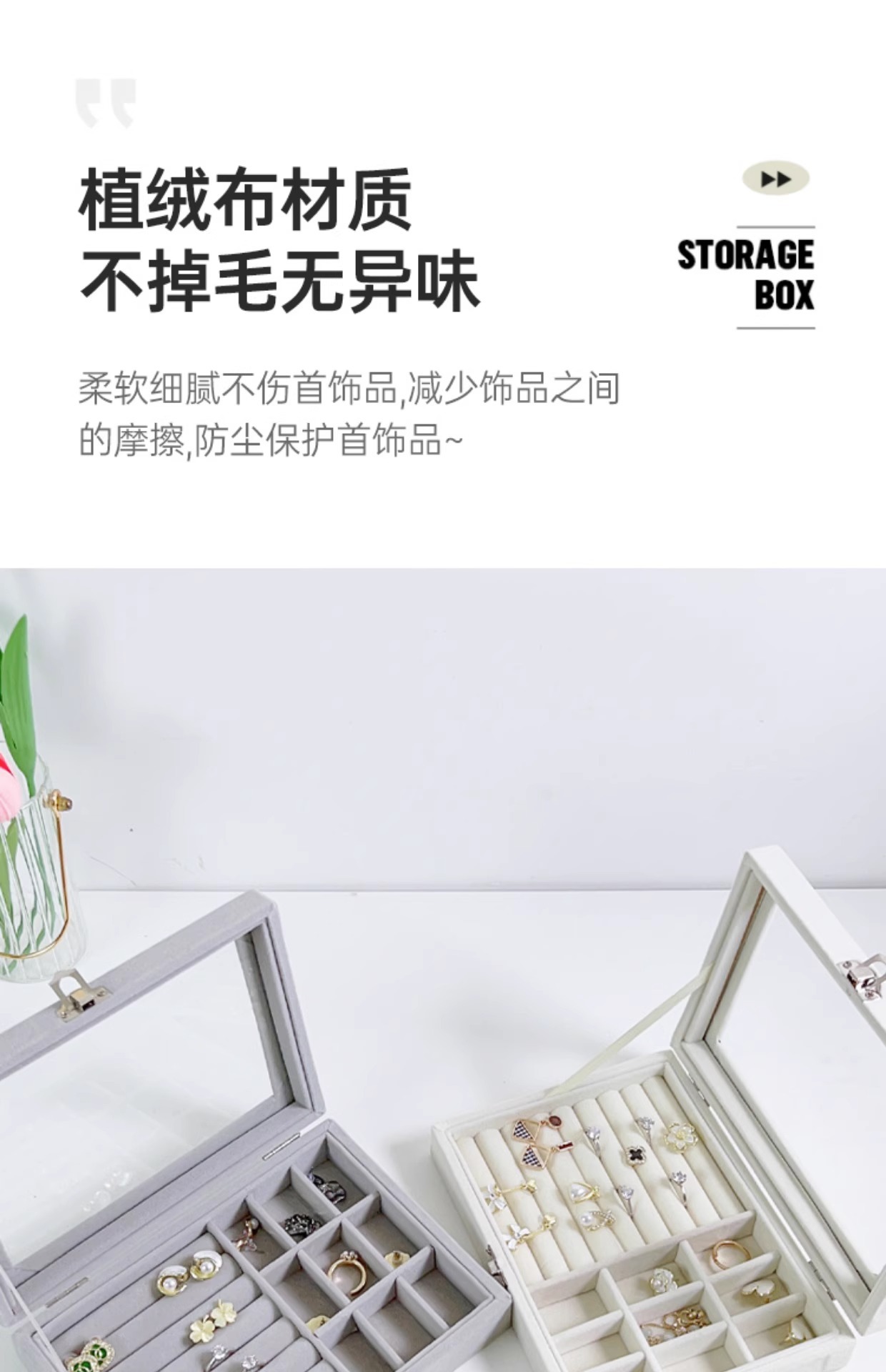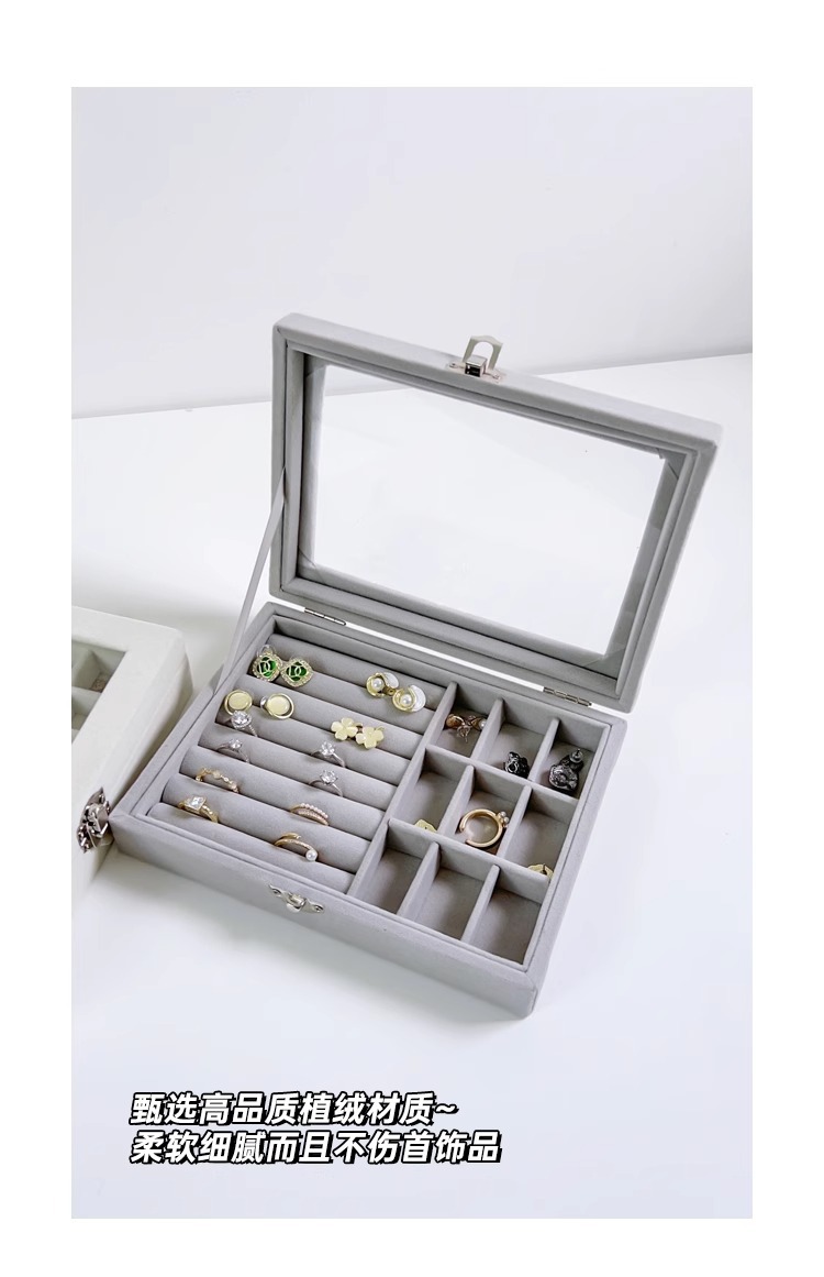 Large Capacity Flannel Jewelry Display Jewelry Storage Box Earrings Earrings Ring Storage Box Advanced Sense Dust-proof Box