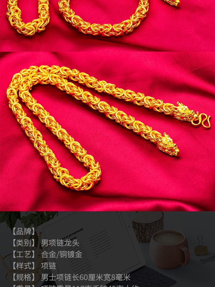 Vietnam gold men's faucet bracelet necklace men's cloth pattern men's necklace faucet live jewelry wholesale