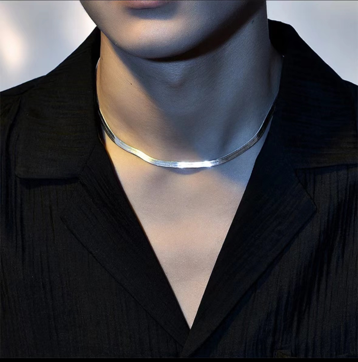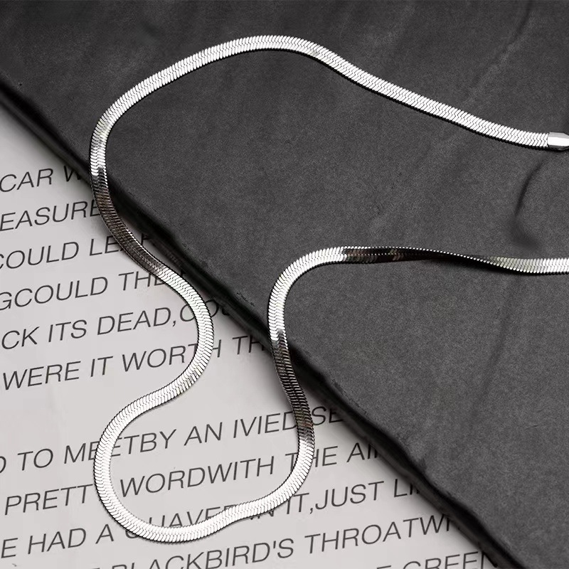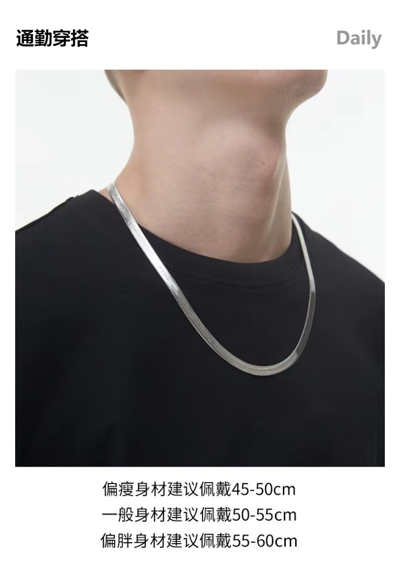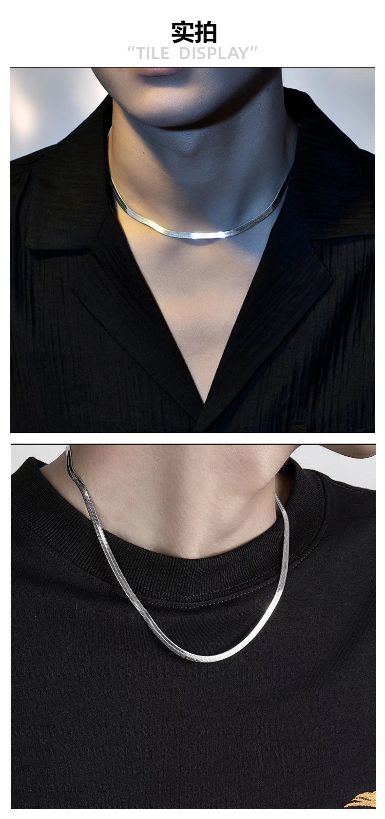 Minimalist Snake Bone Necklace for Men, Hip-Hop Flat Blade Clavicle Chain, Niche Ins Titanium Steel Chain, Trendy and Cool for Men
