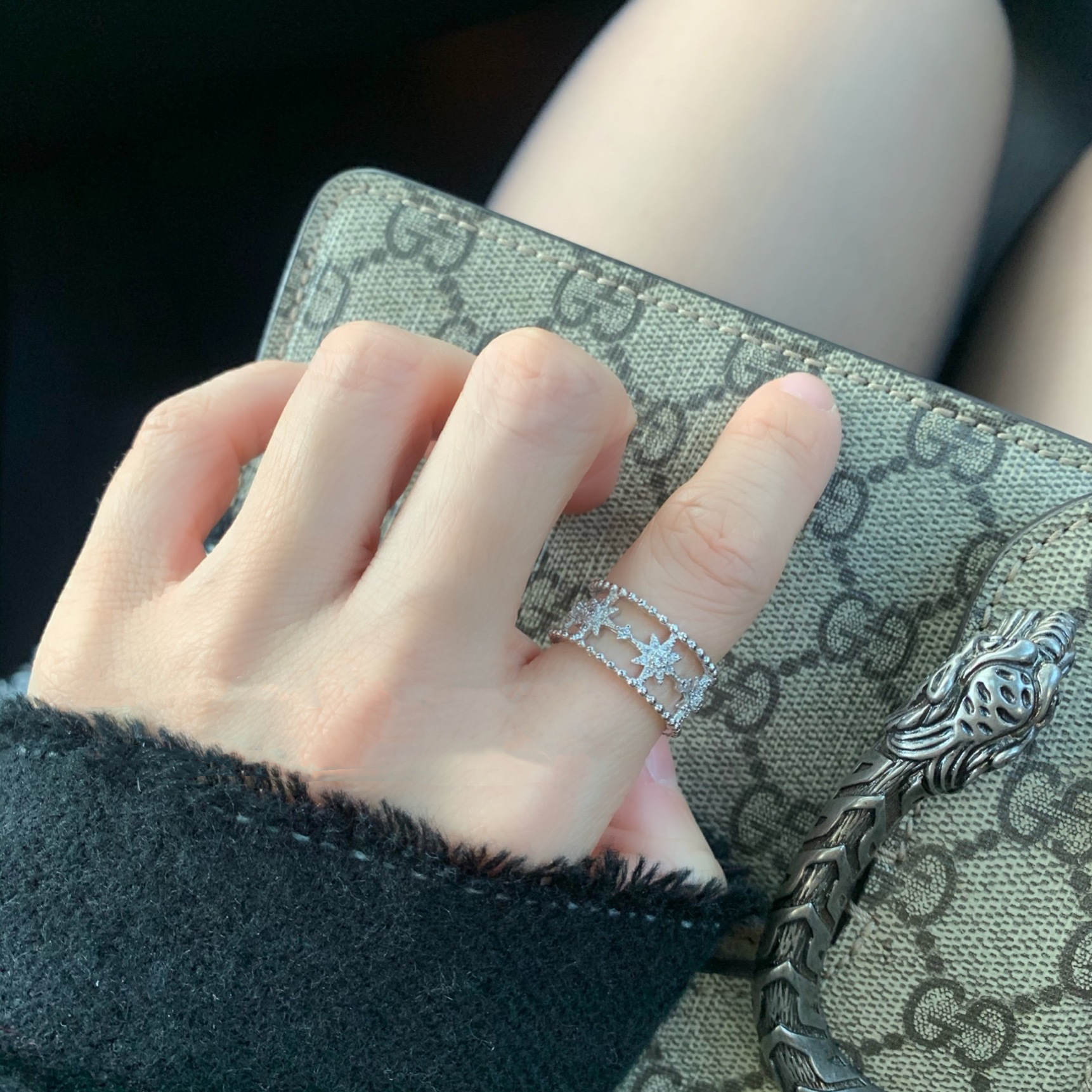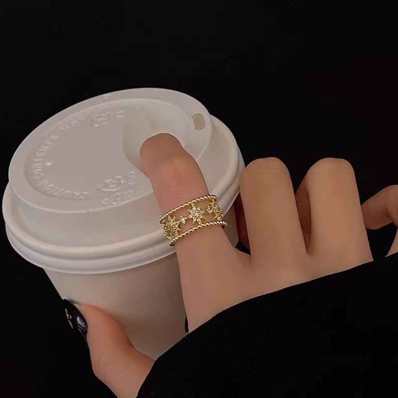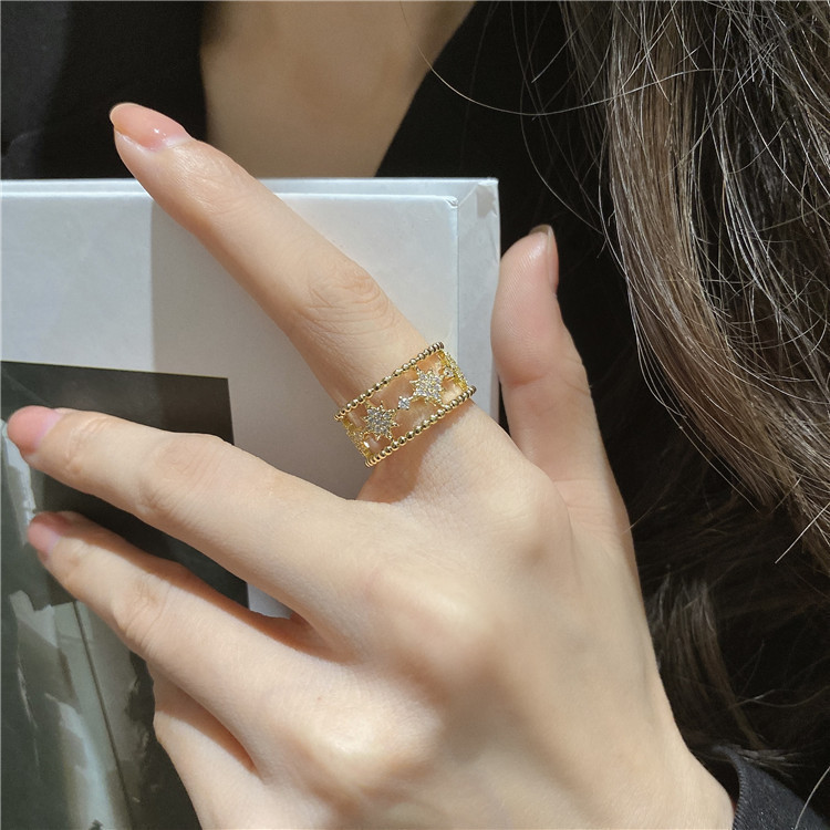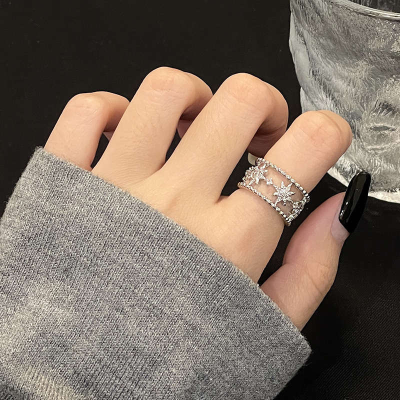 Dongdaemun Flash Diamond Six-pointed Star Open Ring Women's Light Luxury High-end Fashion Personalized Index Finger Joint Cold Wind Ring