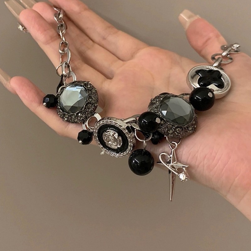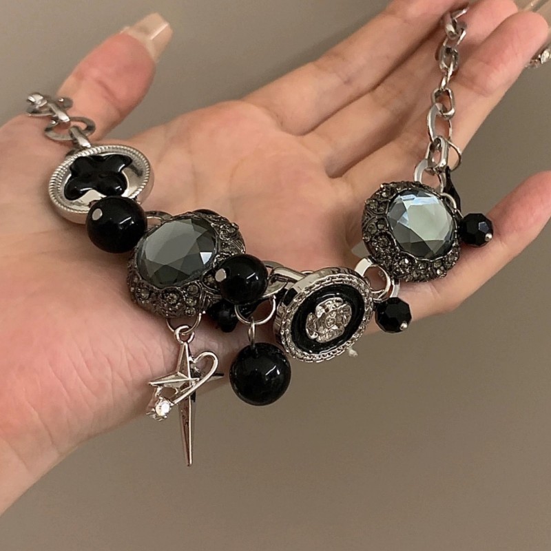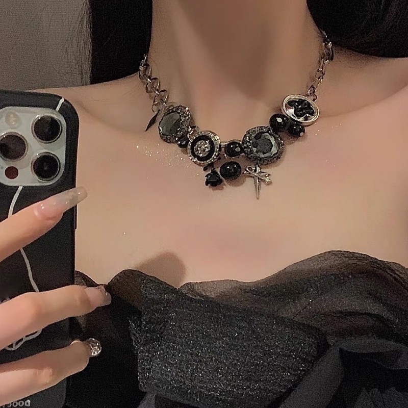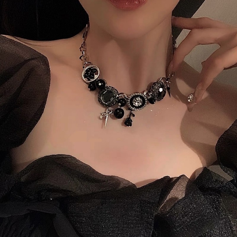 Personality Sweet Cool Dark Button Star Rose Clavicle Chain Heavy Industry Spice Girl Subculture Exaggerated Gothic Punk Necklace