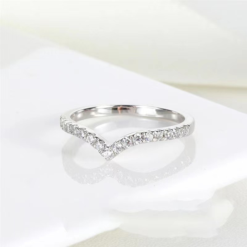 French Elegant V-shaped Rig Plating 18K White Gold Slim and Exquisite V-shaped Micro-inlaid Zircon Tail Ring Diamond Ring for Women