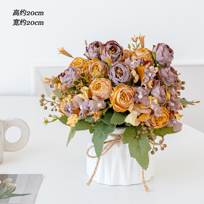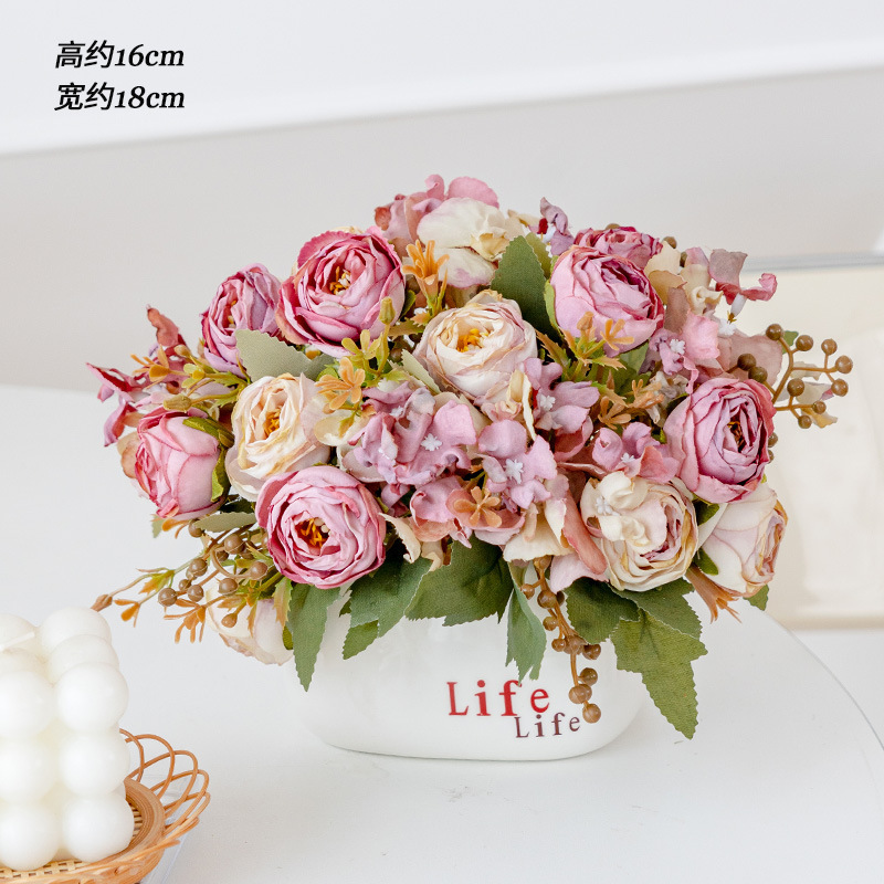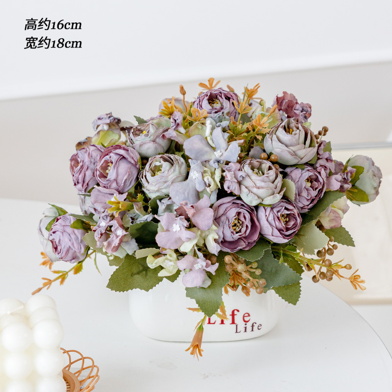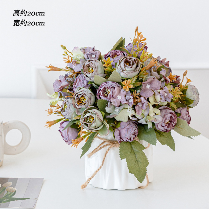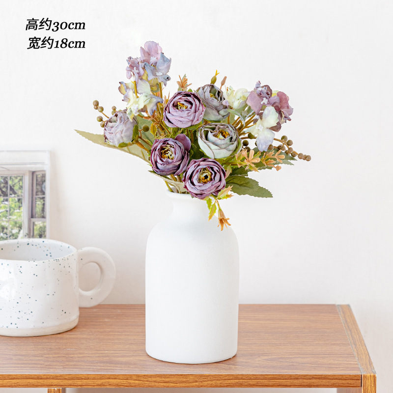 Color: 1 bunch purple retro diamond rose hydrangea white pottery
