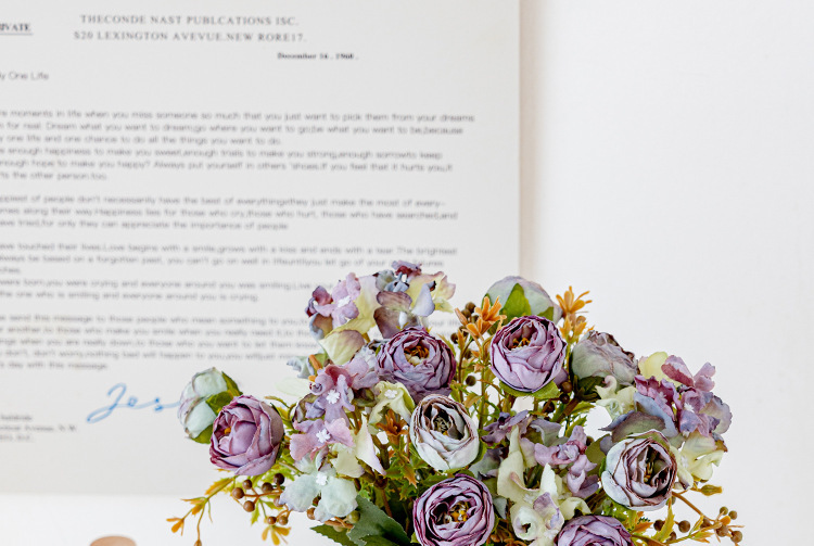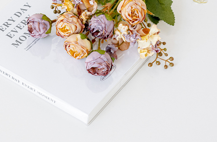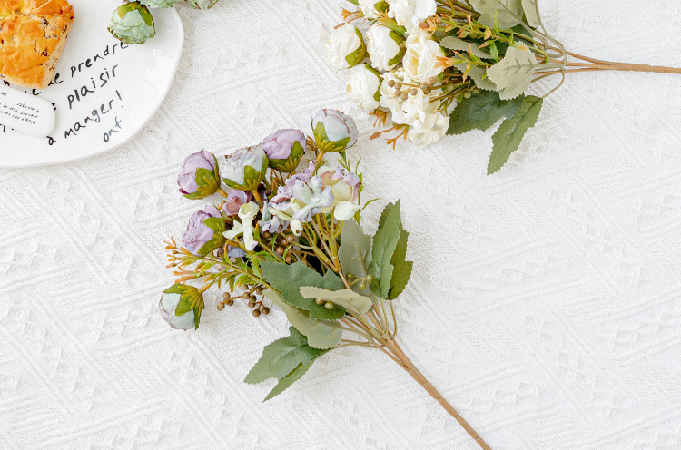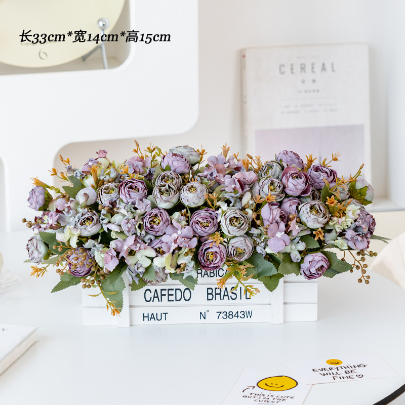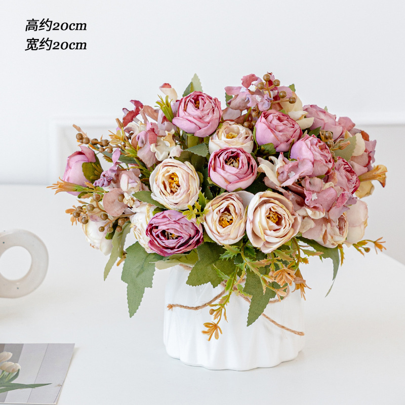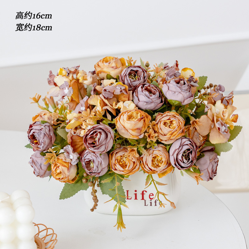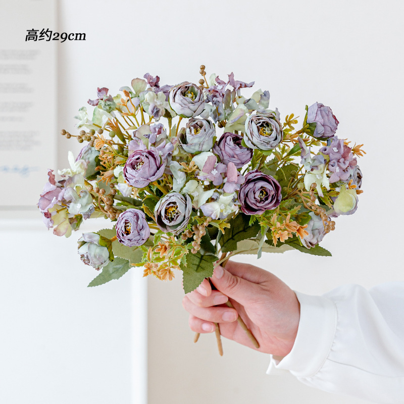 Color: 1 bunch purple retro diamond rose hydrangea white pottery