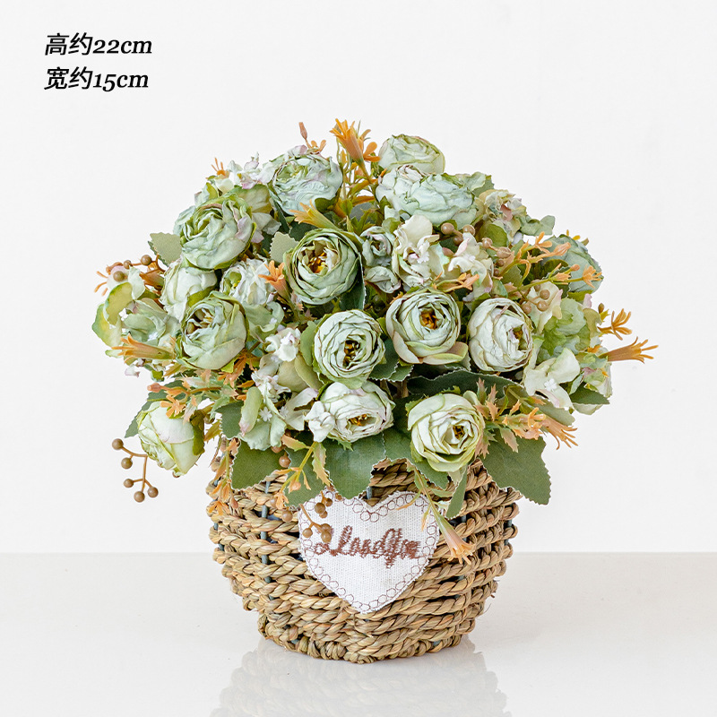 Color: Green Retro Diamond Rose Hydrangea Small Round Basket