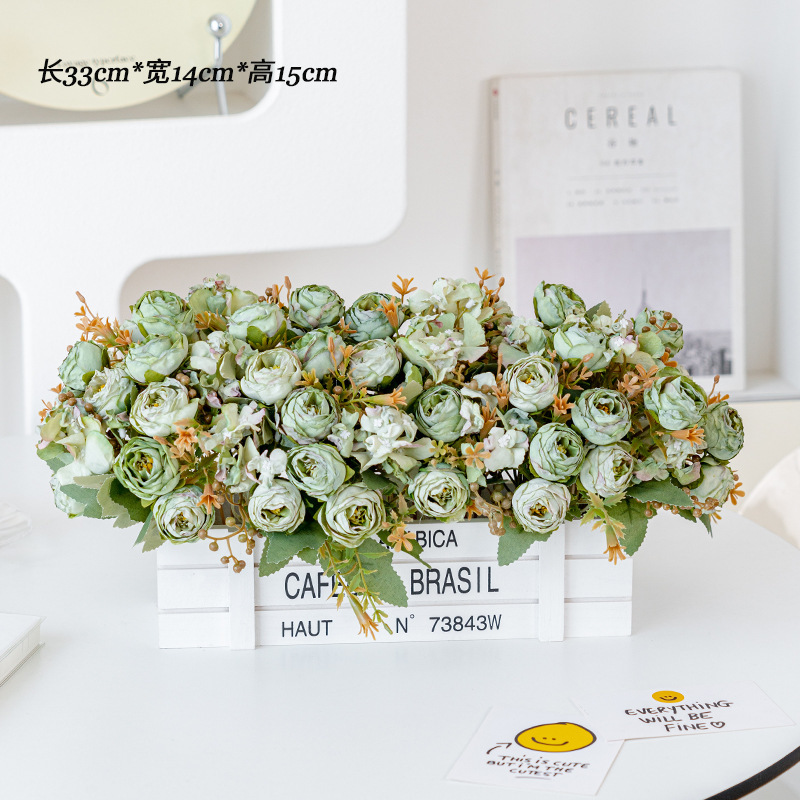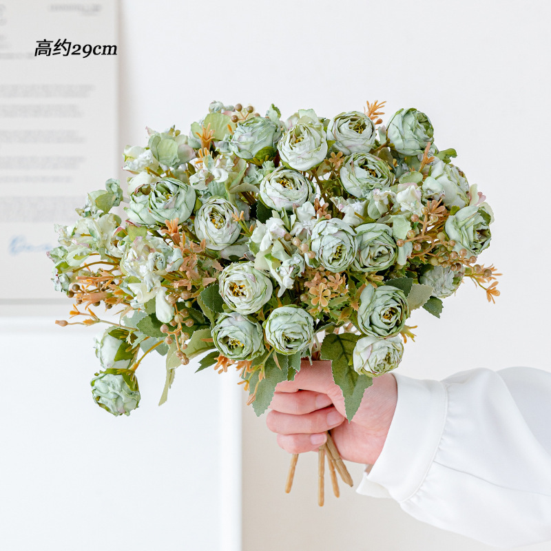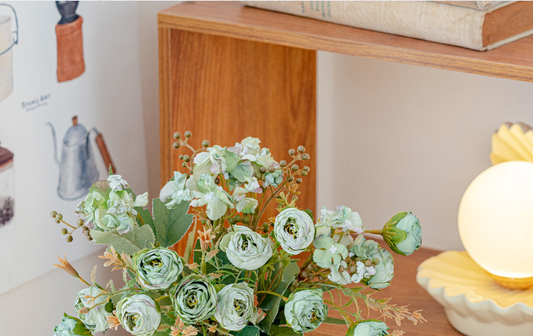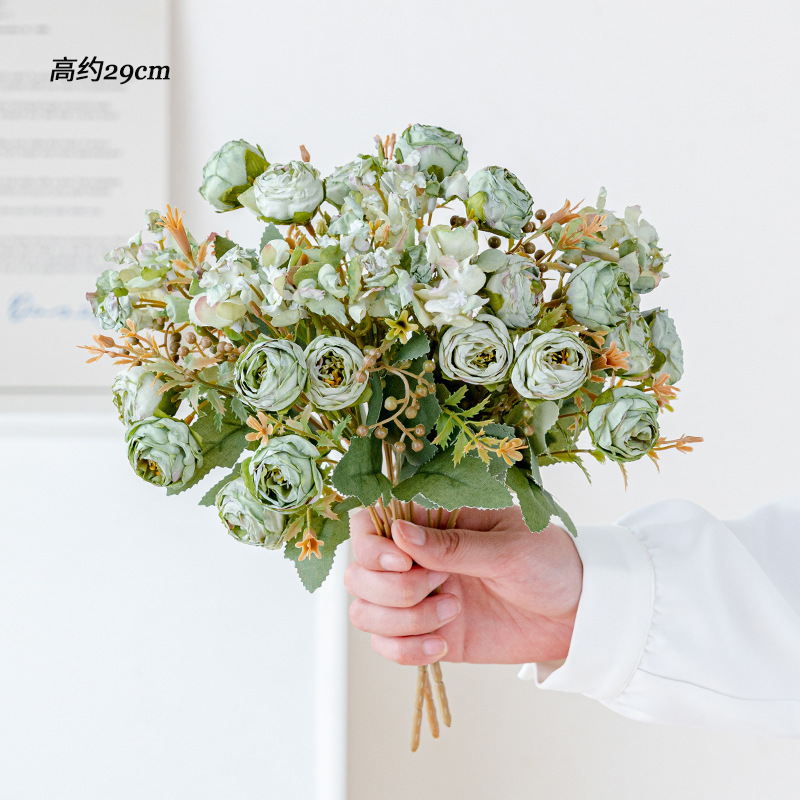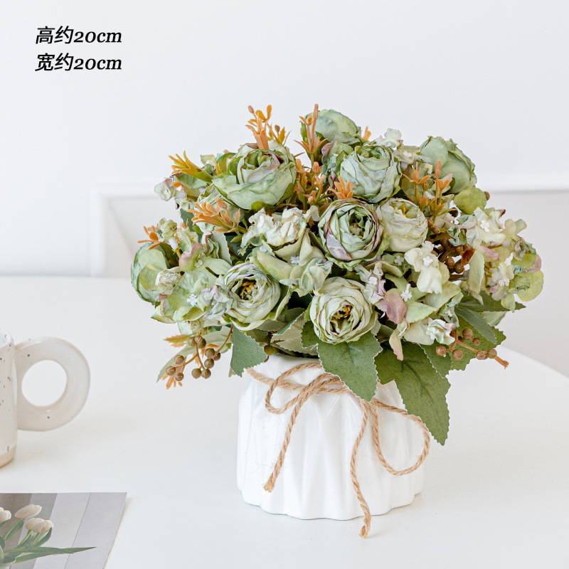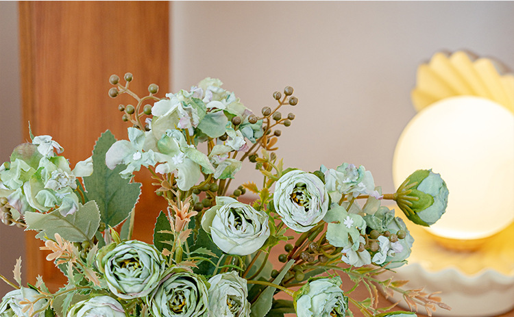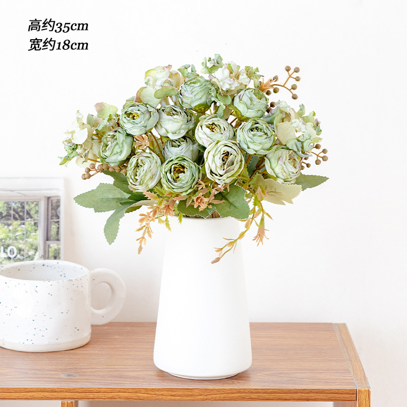 Color: 1 bunch green retro diamond rose hydrangea white pottery