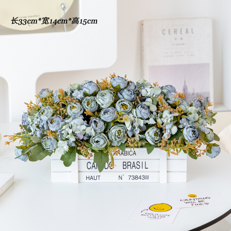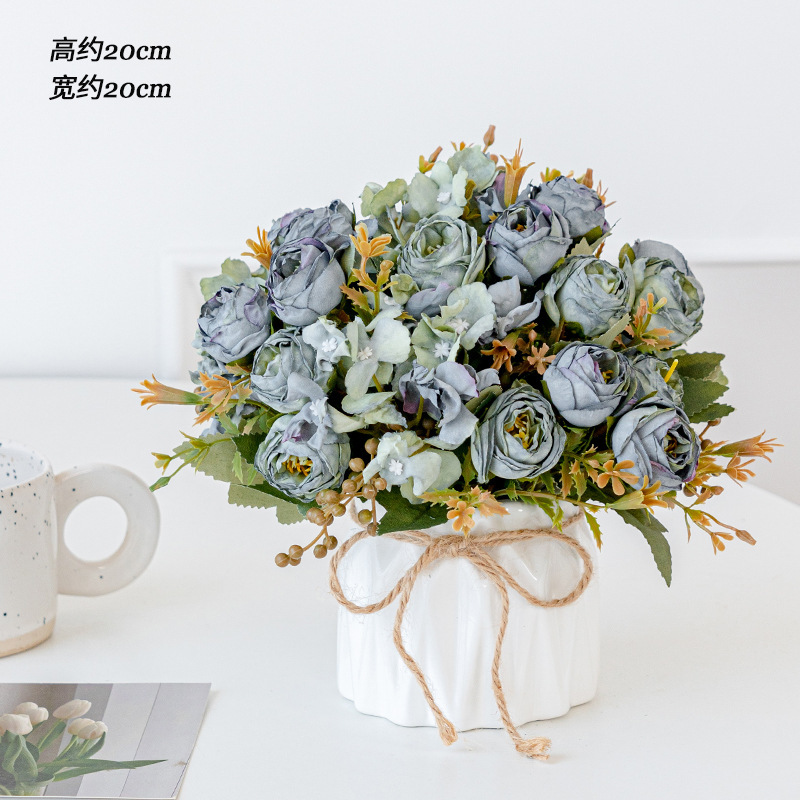 Color: 1 bunch of blue retro diamond rose hydrangea white pottery