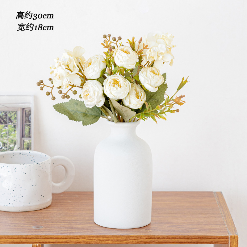 Color: 1 bunch white retro diamond rose hydrangea white pottery