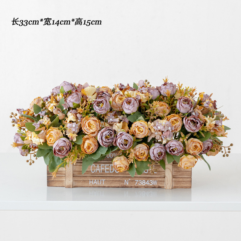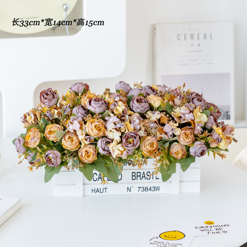 Color: 1 bunch yellow retro diamond rose hydrangea white pottery
