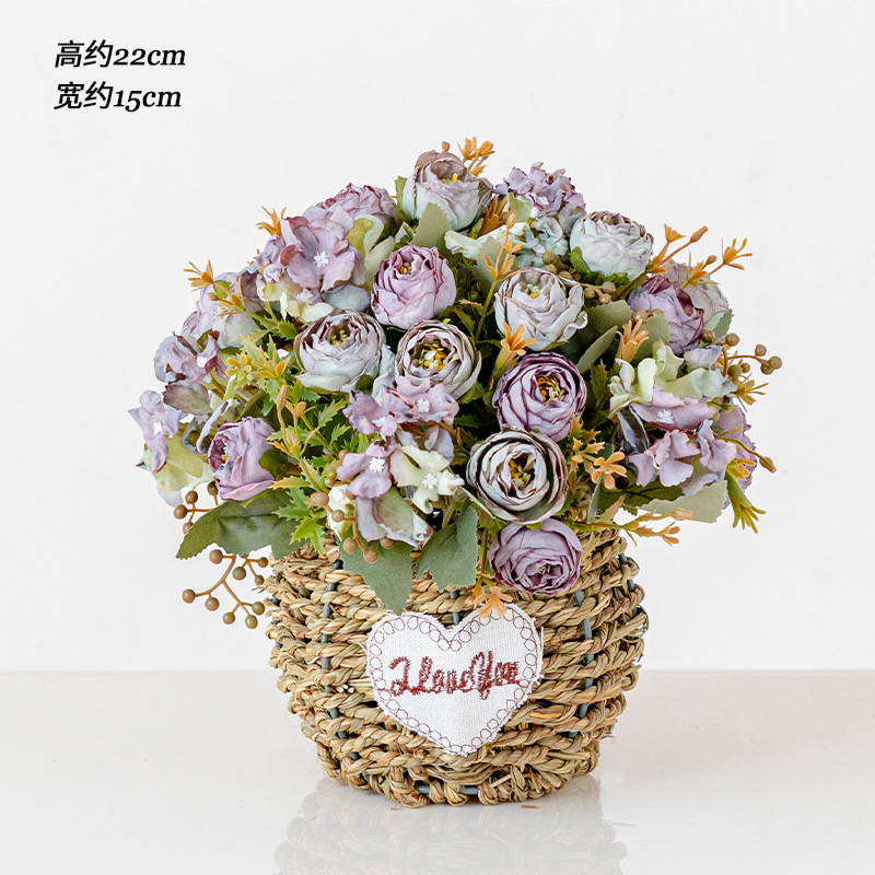 Color: Purple Retro Diamond Rose Hydrangea Small Round Basket