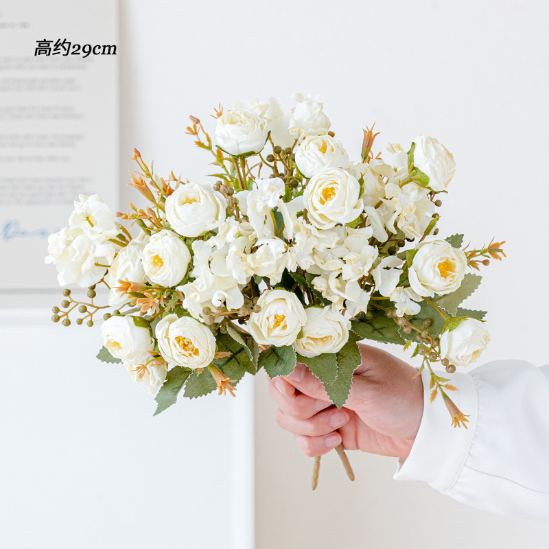 Color: 1 bunch of white retro diamond rose hydrangea large glass handle