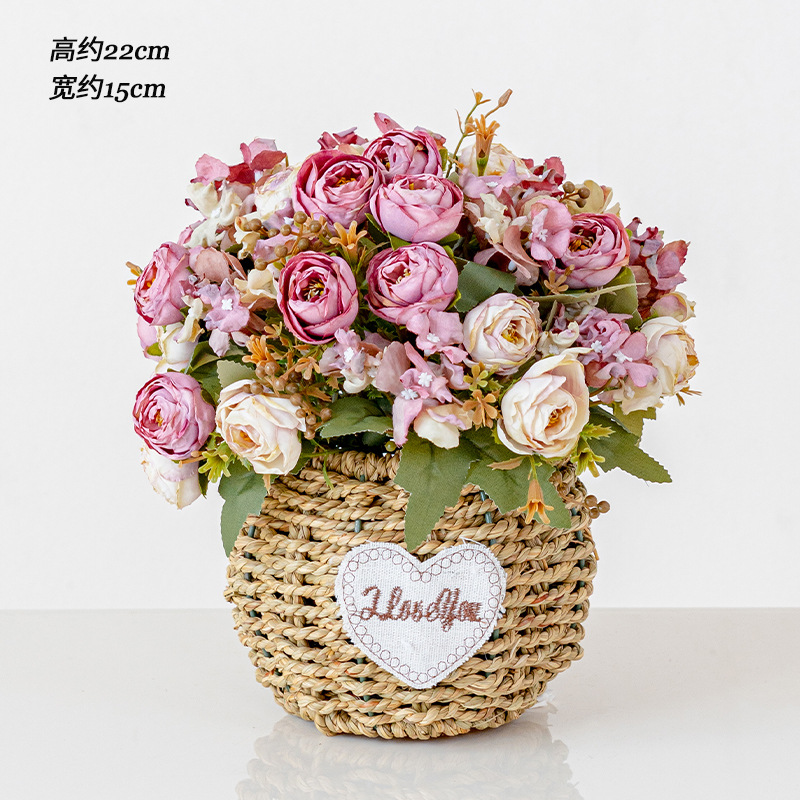 Color: Pink Retro Diamond Rose Hydrangea Small Round Basket