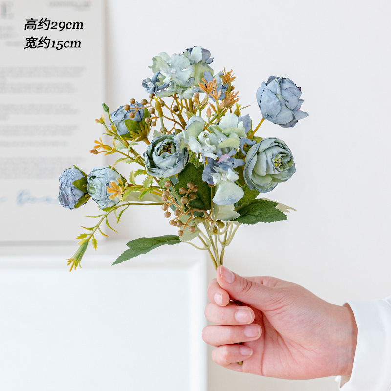 Color: 5 bunch of blue retro diamond rose hydrangea