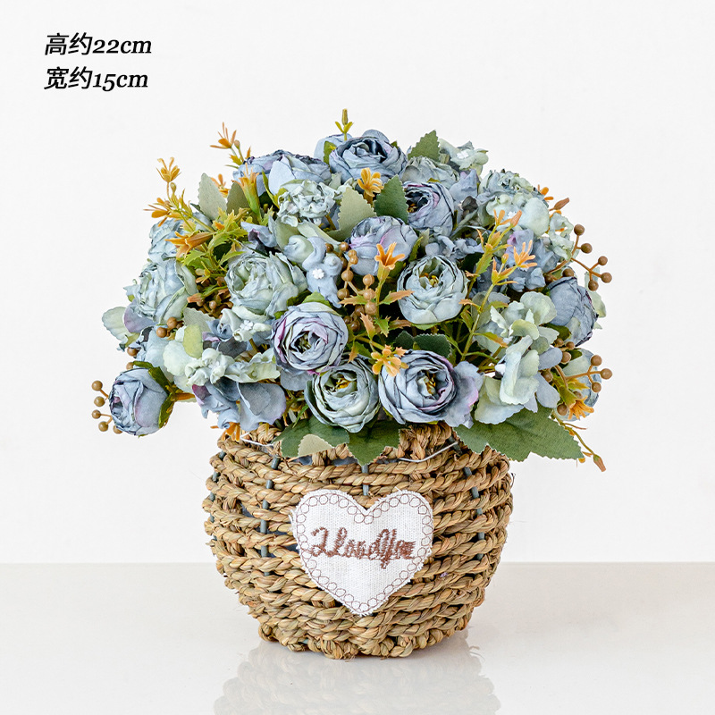 Color: Blue Retro Diamond Rose Hydrangea Small Round Basket