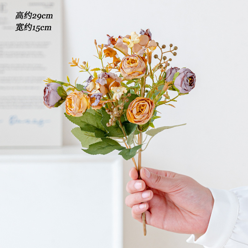 Color: 5 bunch yellow retro diamond rose hydrangea