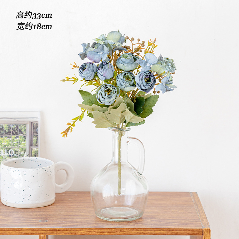 Color: 1 bunch of blue retro diamond rose hydrangea large glass handle