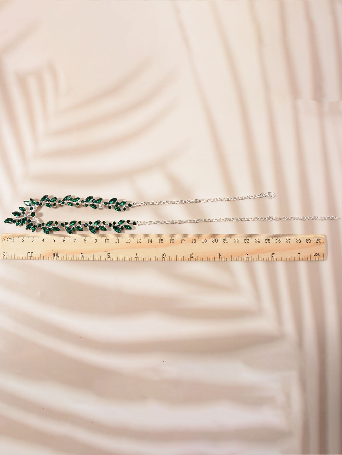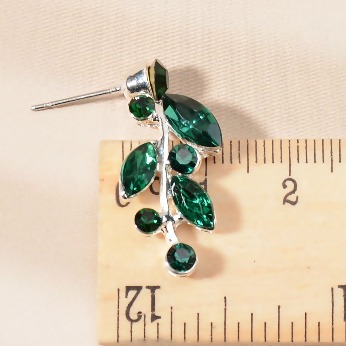 Color: Tl368_e style_ear pins with silver base and green diamonds + hole green acrylic glass