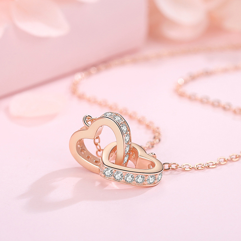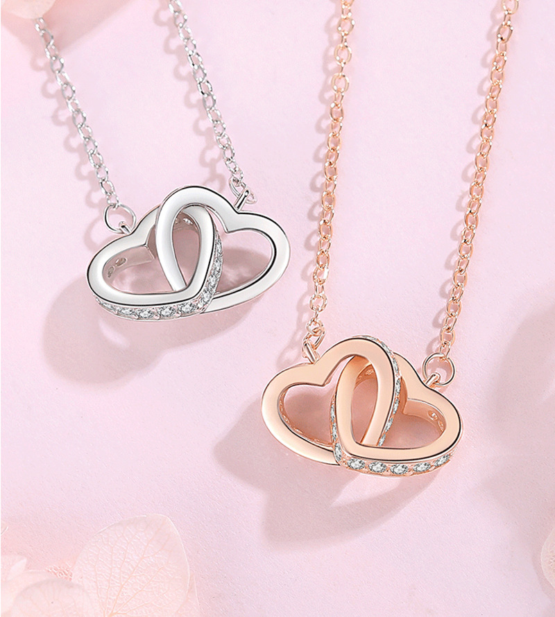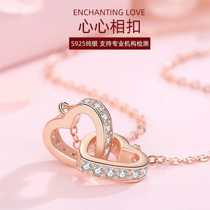[Necklace Customization] s925 Silver Heart Phase Buckle Clavicle Necklace Heart-shaped Korean-style Joker Niche Simple Fashion