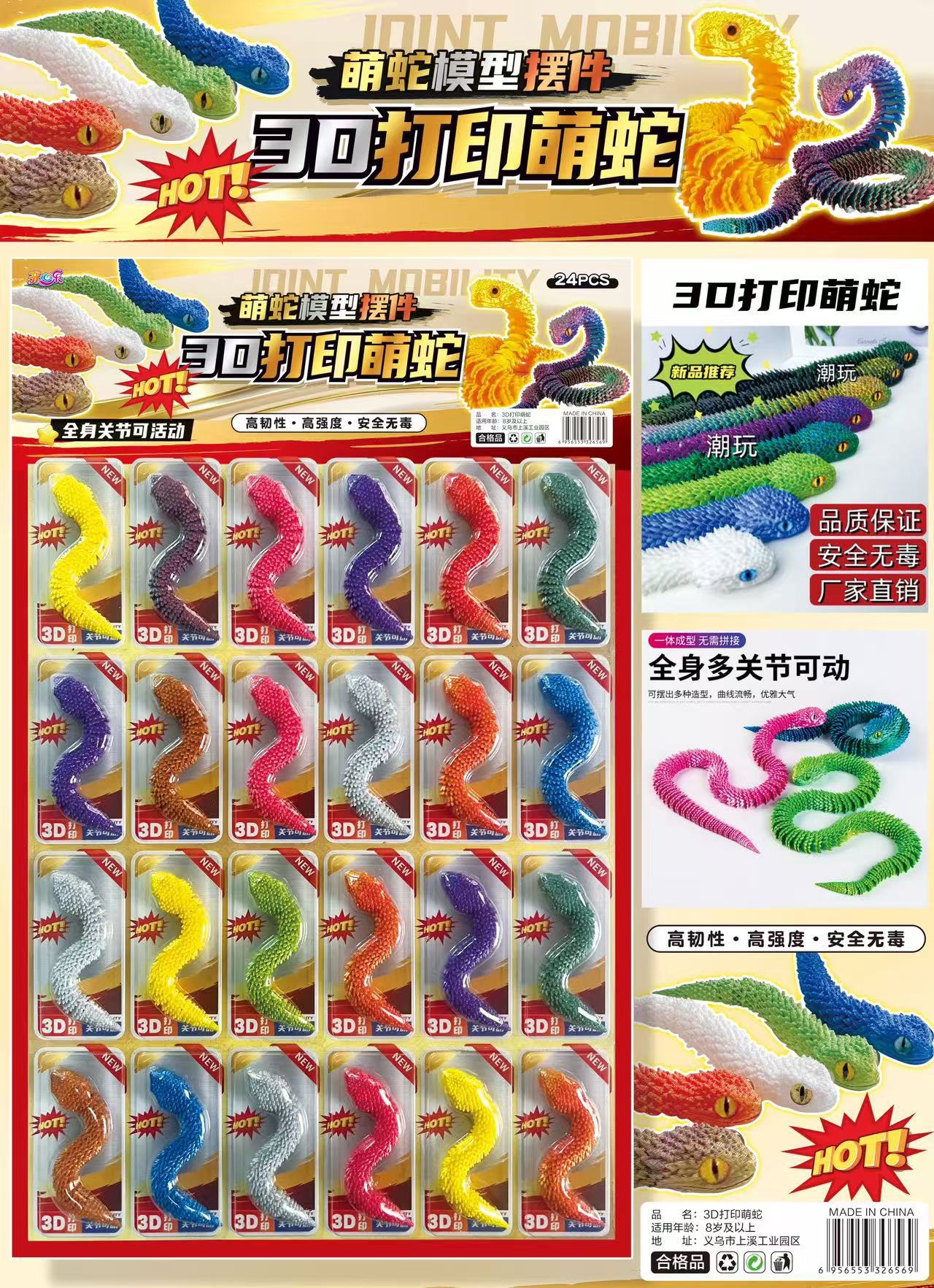 Color: 2 yuan 3d printed cute snake ornaments - 24 pieces in total