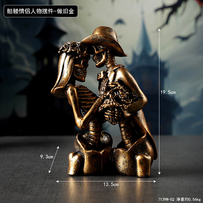 Color: 7139n-02 skeleton couple figure ornament--old gold