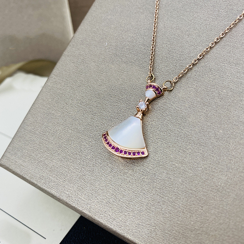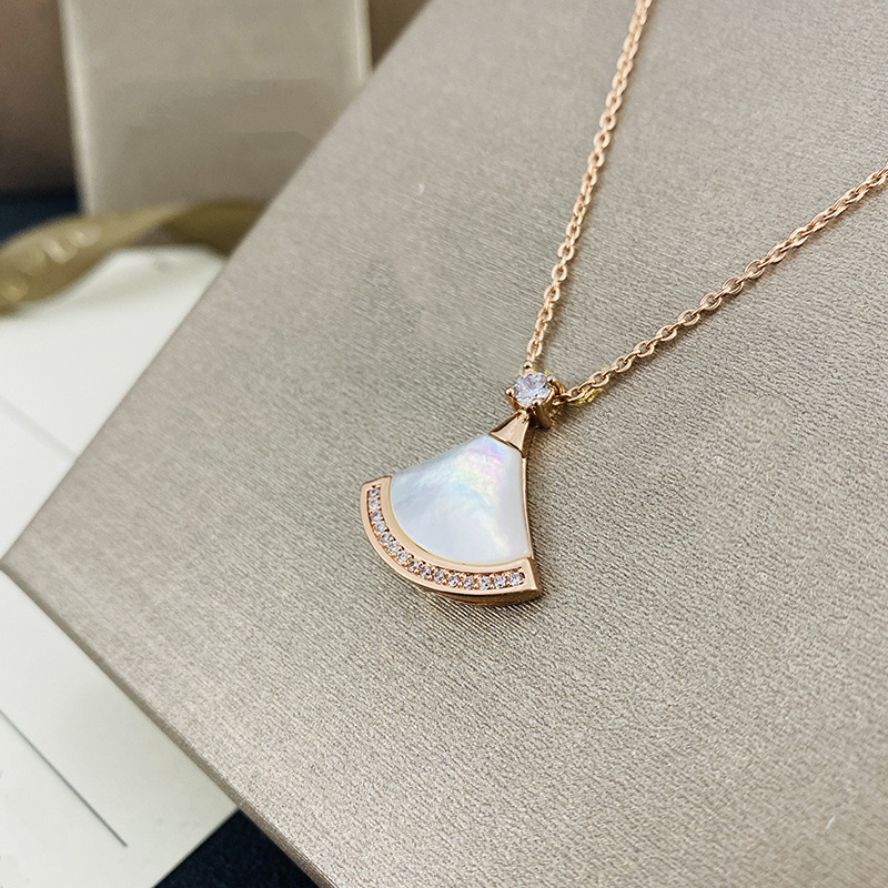 Color: Big skirt double shell necklace. Rose White. White Diamond