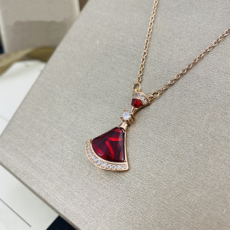 Color: Big skirt double shell necklace. Rose Red. Pink Diamond